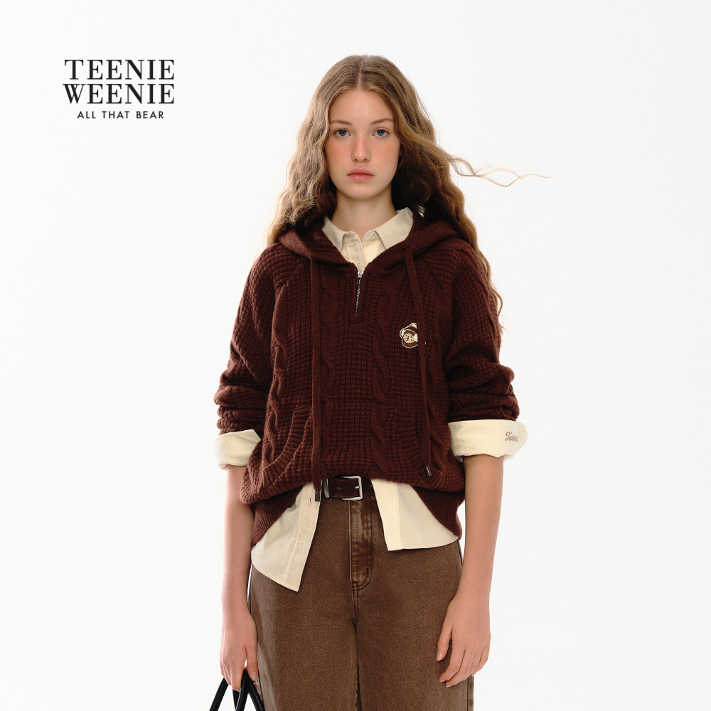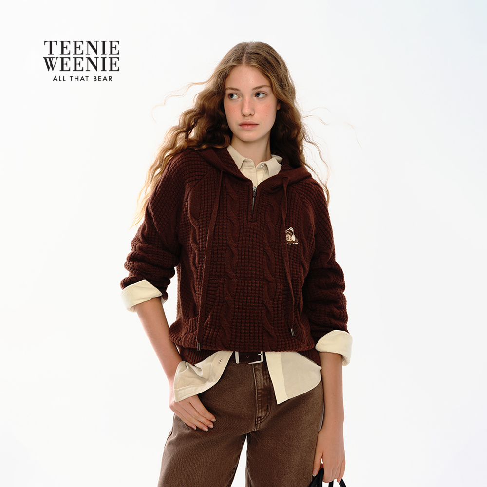 TeenieWeenie小熊女装毛针织衫2025冬季新款简约休闲舒适连帽毛衣