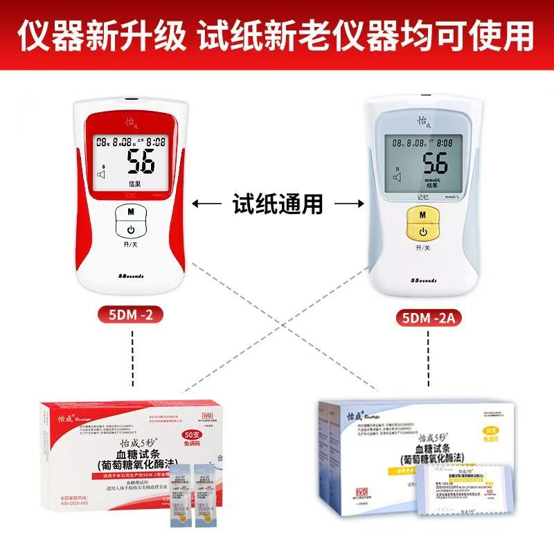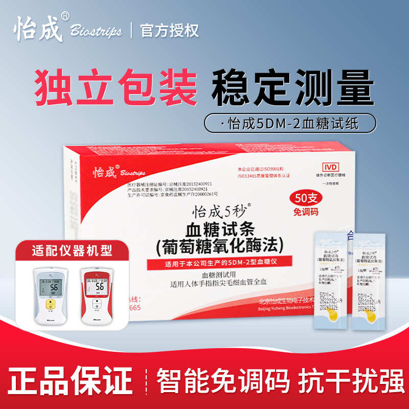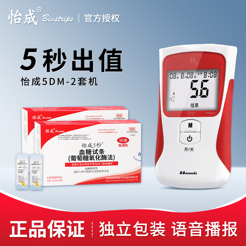 怡成5DM-2血糖仪试纸家用正品5DM-2A血糖仪独立装试纸免调码全套