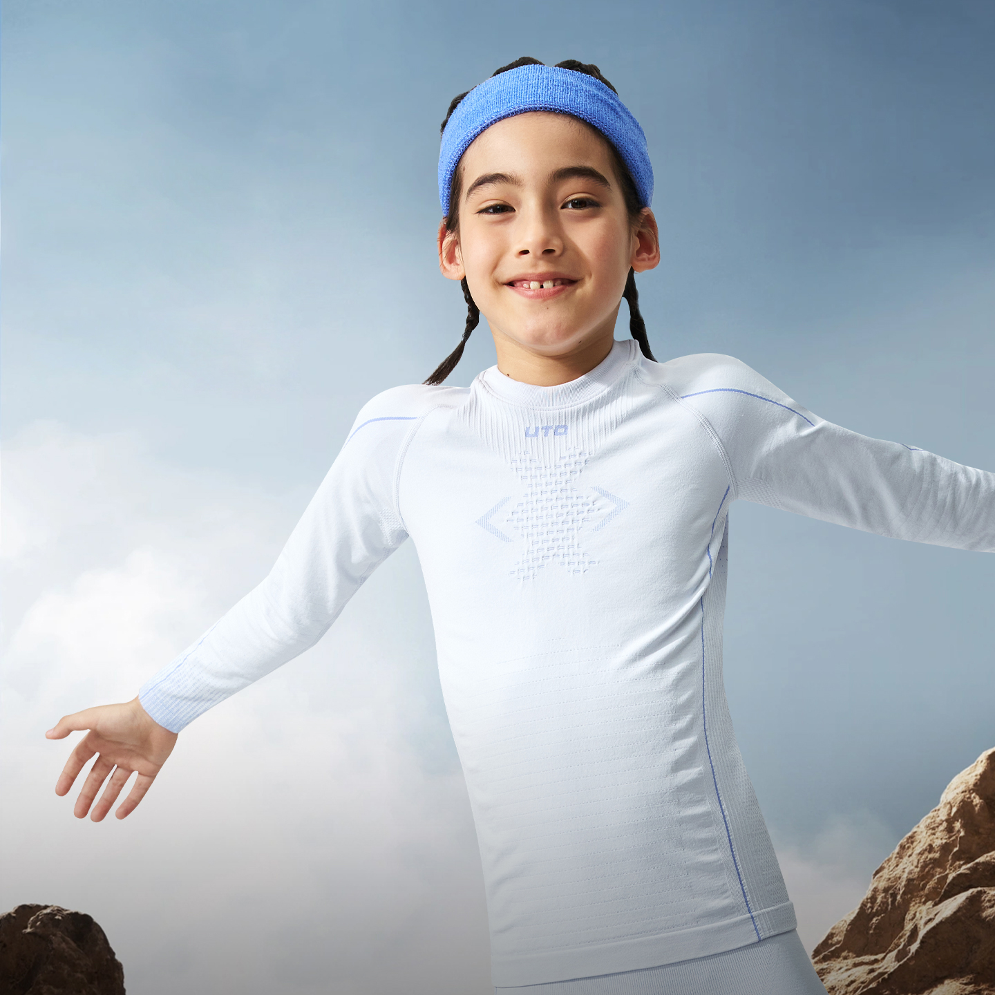 UTO悠途炭芯儿童运动速干衣男女童户外徒步跑步排汗保暖内衣套装