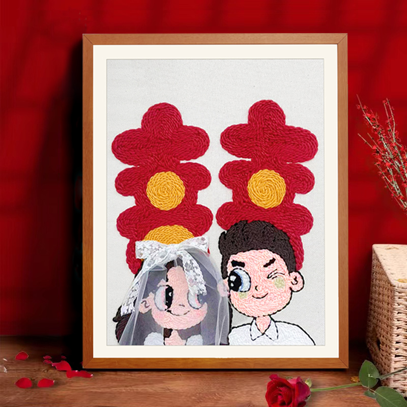 喜字戳戳绣手工diy材料包工具送情侣结婚礼物毛线十字绣装饰挂画