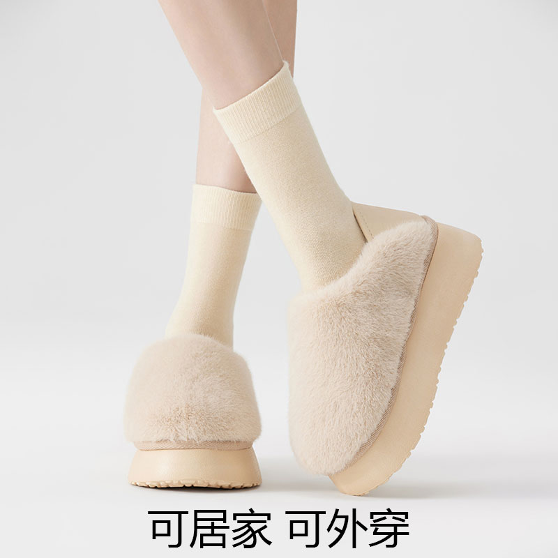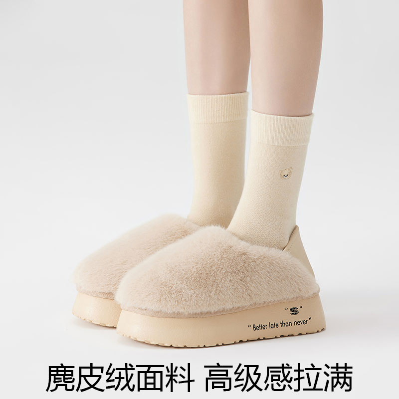 chikoku厚底棉鞋女冬季包跟居家防滑加厚月子鞋保暖毛绒棉拖外穿,福建 泉州