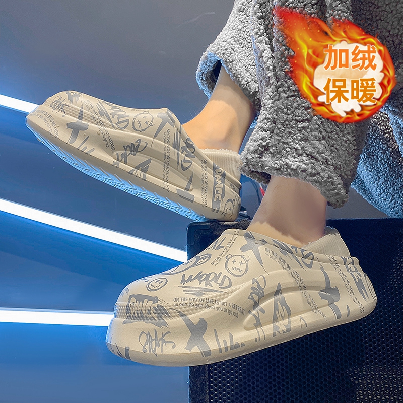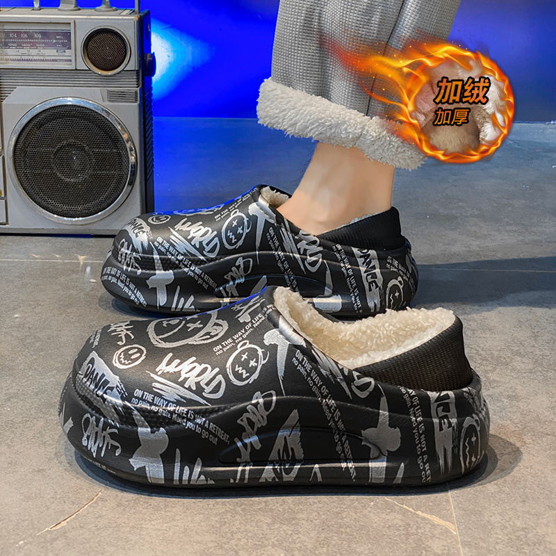 棉拖鞋男款冬季外穿防滑加绒加厚保暖青少年居家防水大头包跟棉鞋,福建 泉州