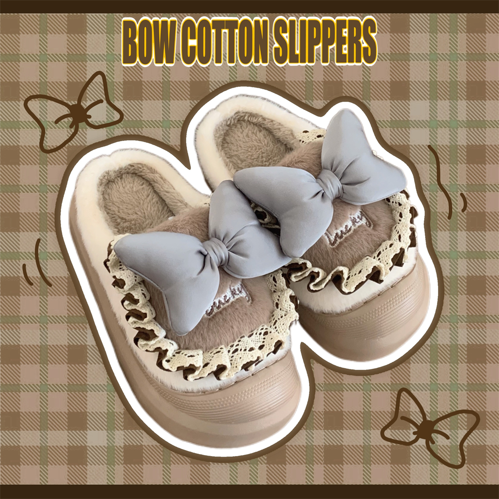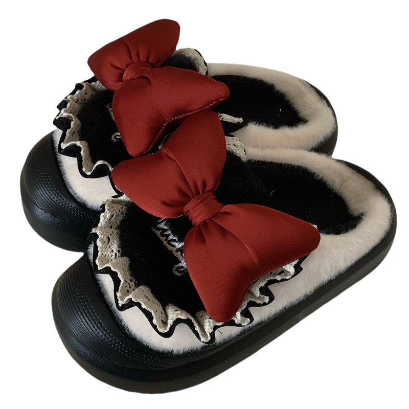 细细条 洛丽塔蝴蝶结棉拖鞋女冬新款网红甜美可爱软厚底居家棉鞋,广东 揭阳