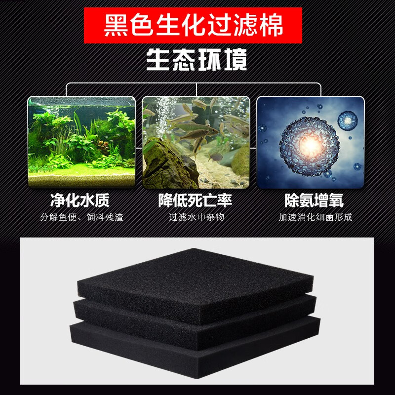 过滤棉鱼缸生化棉黑棉净水培菌水族箱鱼池加厚高密度海绵过滤材料