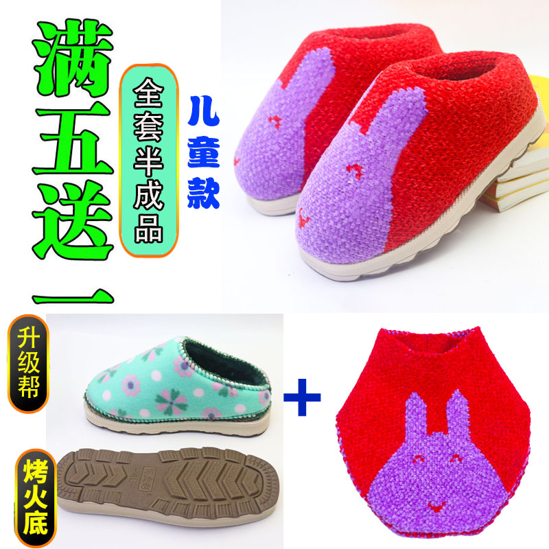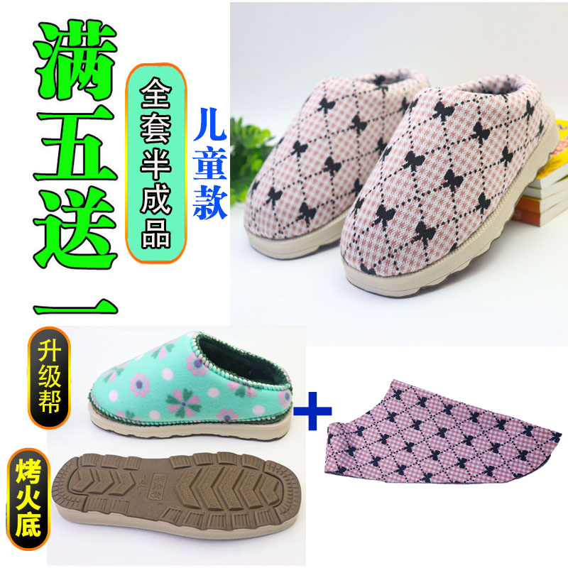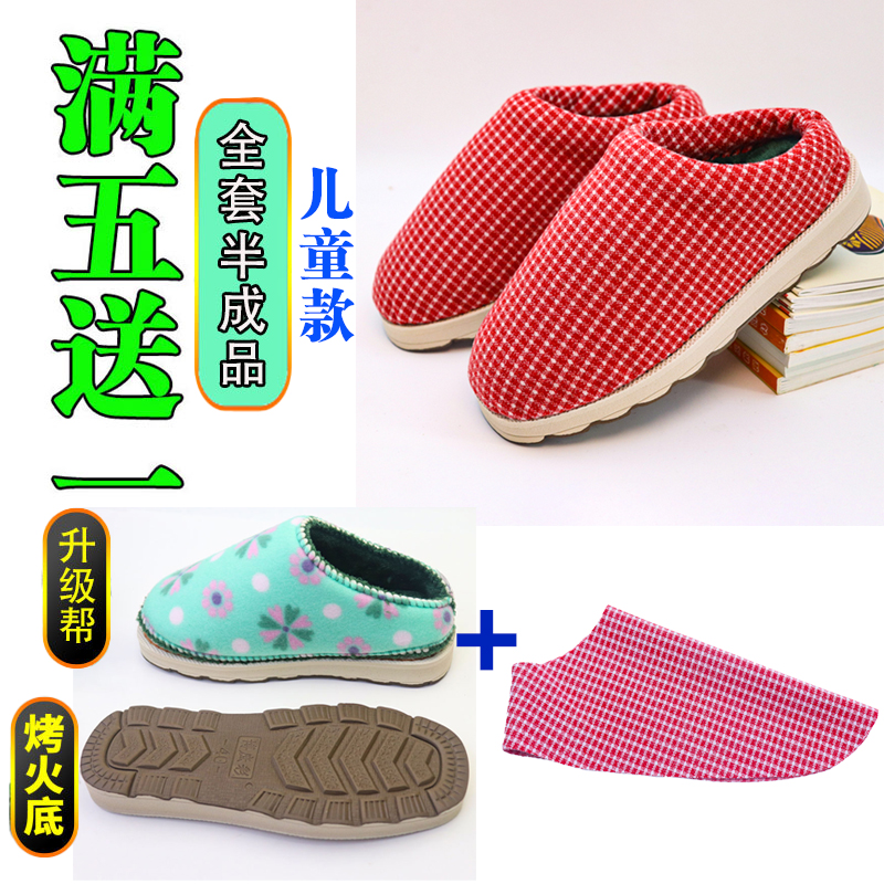 【全套半成品】儿童男孩女孩冬季烤火鞋底鞋帮鞋面子棉靴拖鞋材料,湖北 黄冈