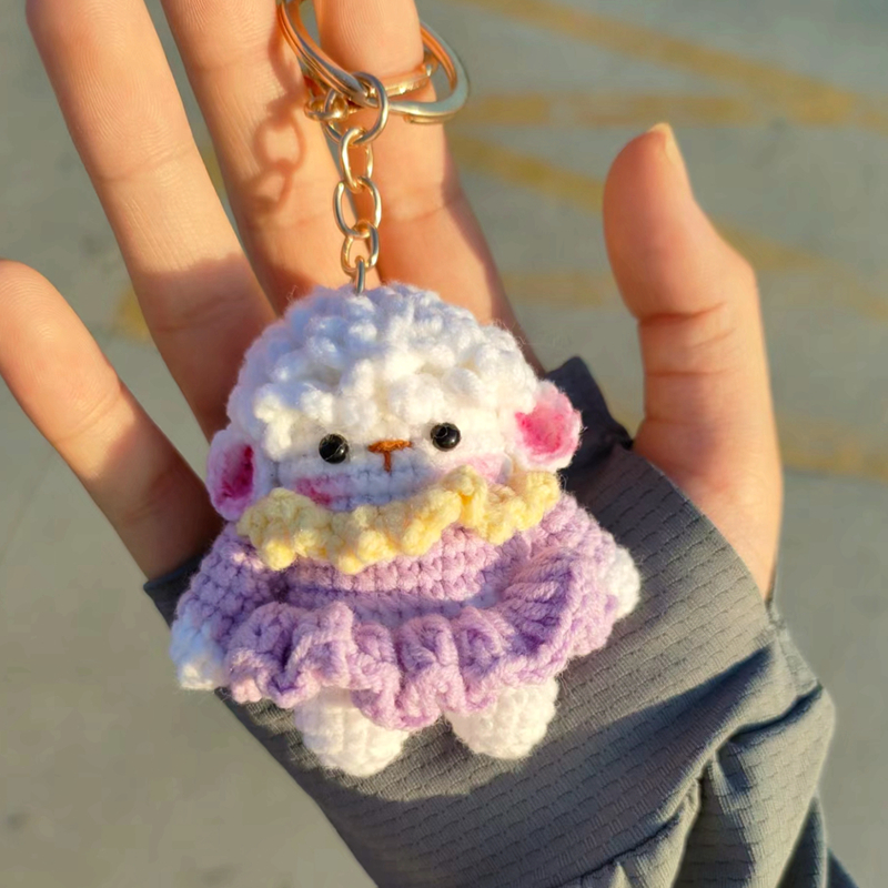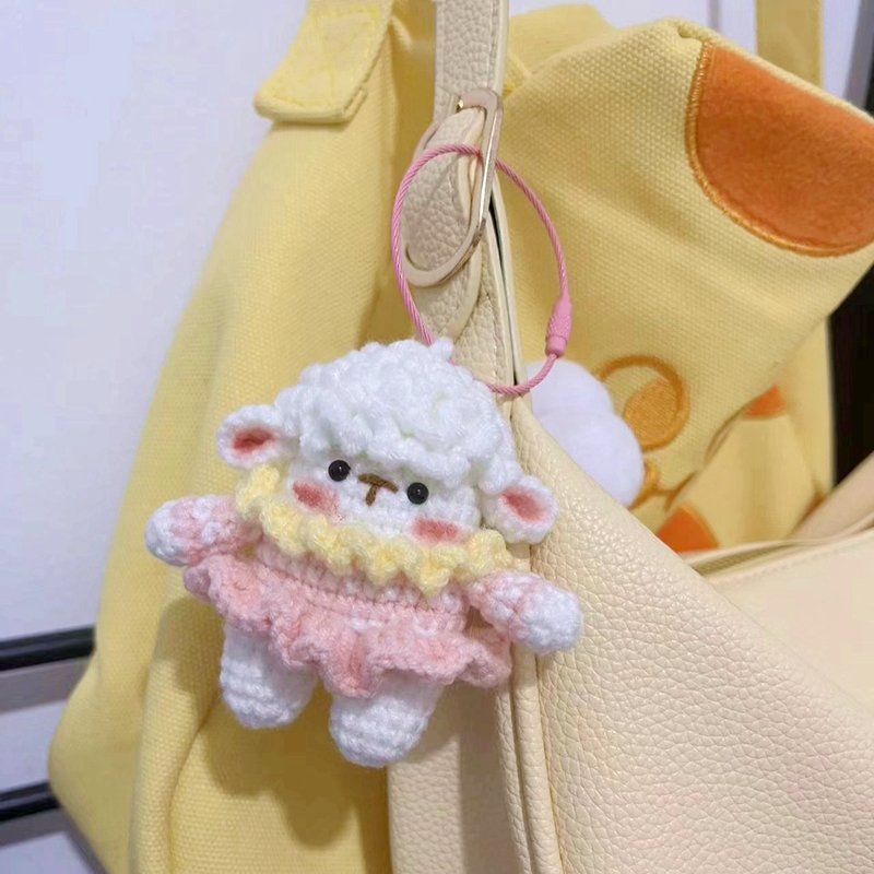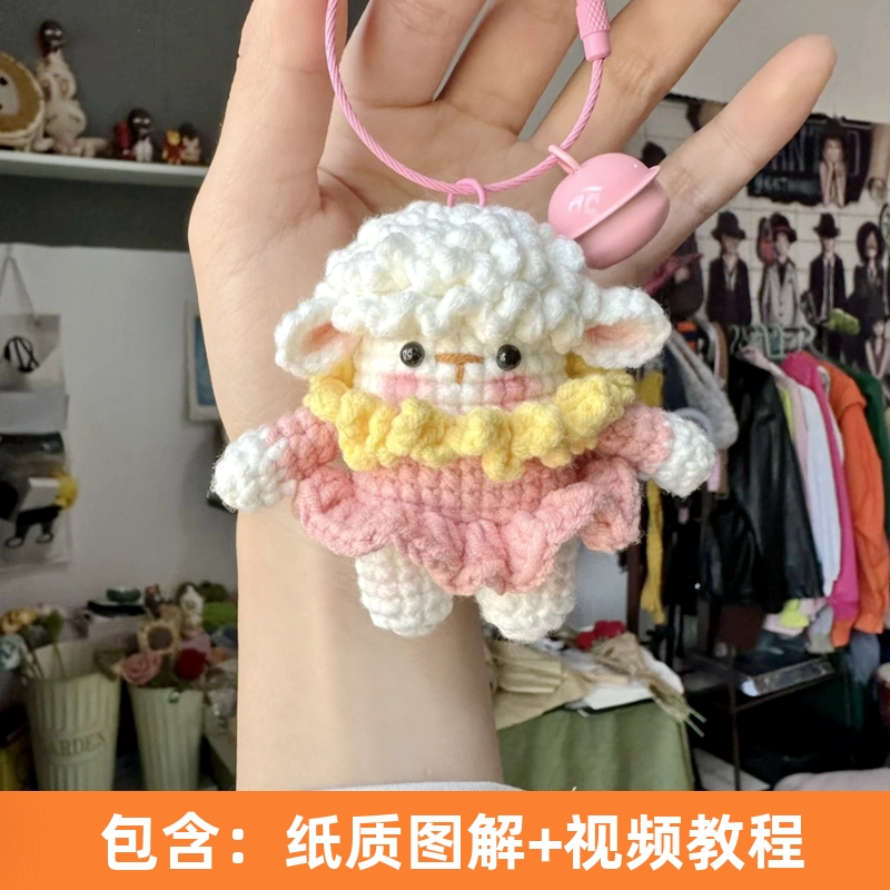 diy编织小羊挂件钩针手工毛线材料包粉色裙裙羊玩偶钥匙扣礼物女