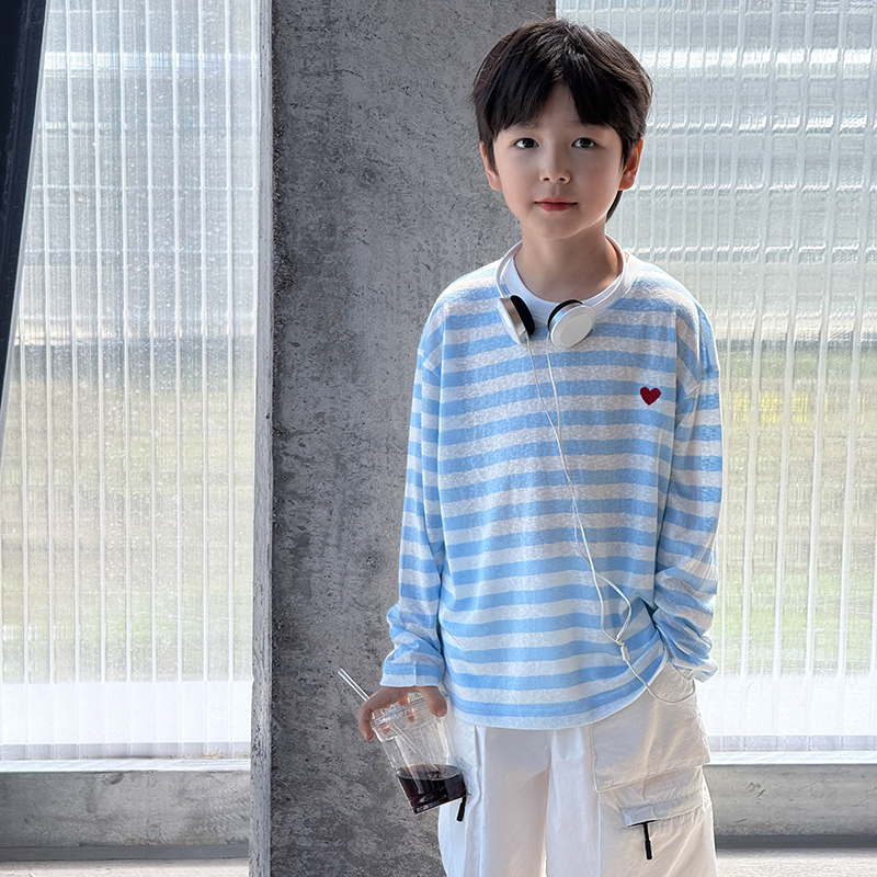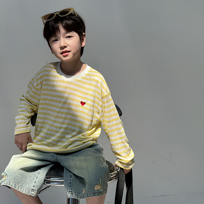 依依妈男童爱心刺绣条纹防晒t恤儿童夏装宝宝薄款皮肤衣打底衫潮,浙江 湖州