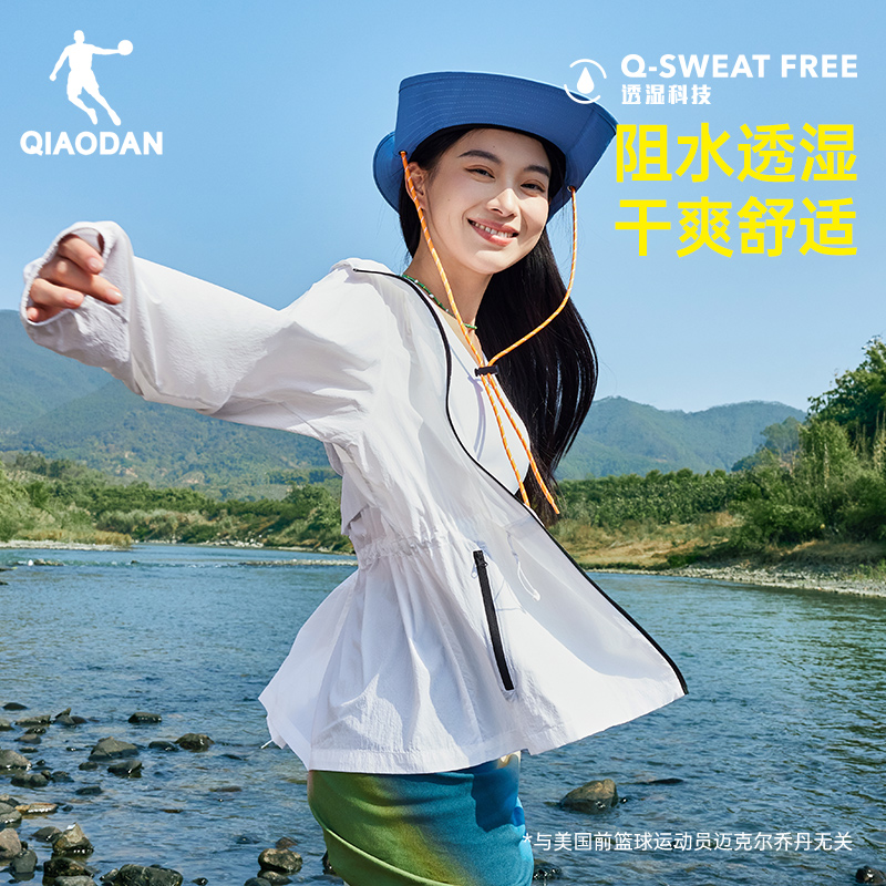 乔丹防晒衣风衣外套女士2025夏季新款UPF100+户外连帽冰感轻薄