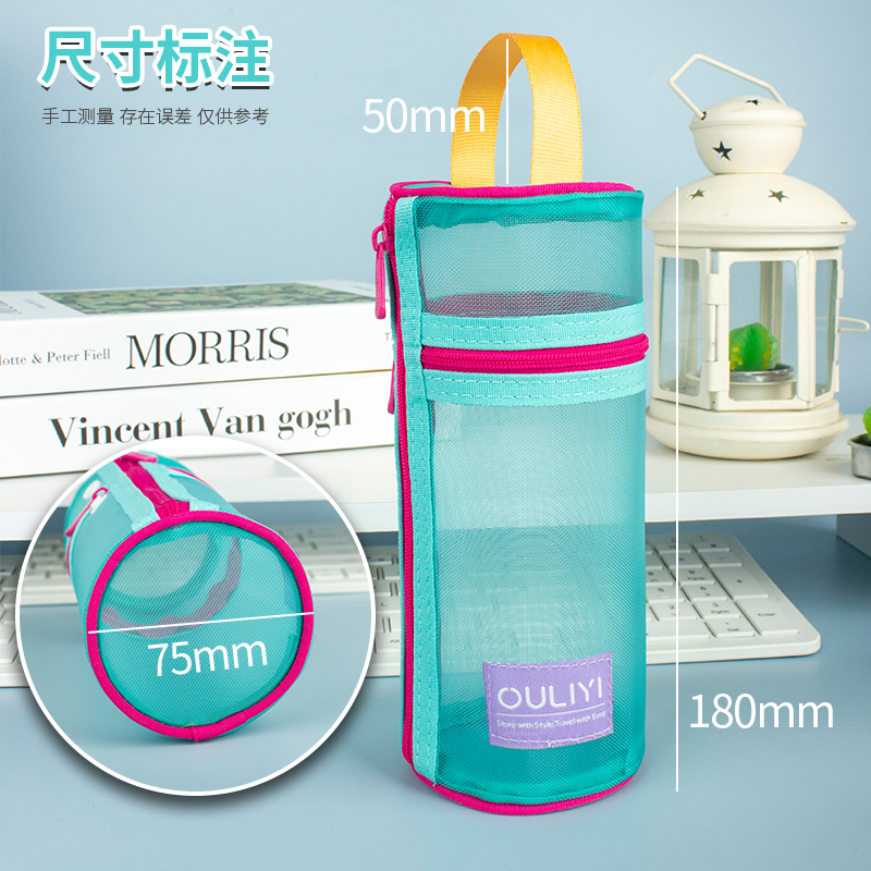 2025新款简约网纱笔袋多巴胺立式笔筒高颜值学生专用大容量文具盒化妆刷收纳袋纵横双用拉链式手提透明网眼袋,广东 东莞