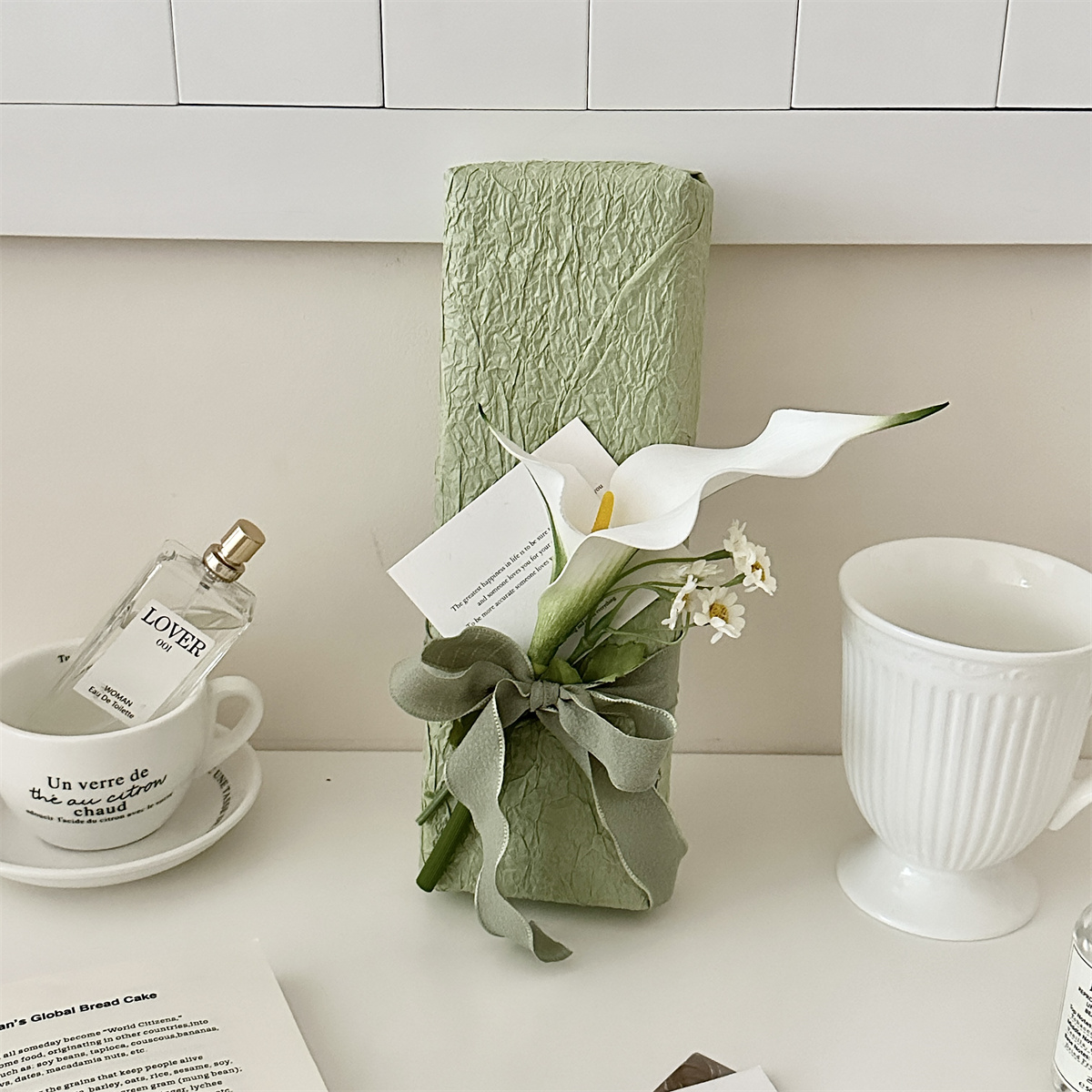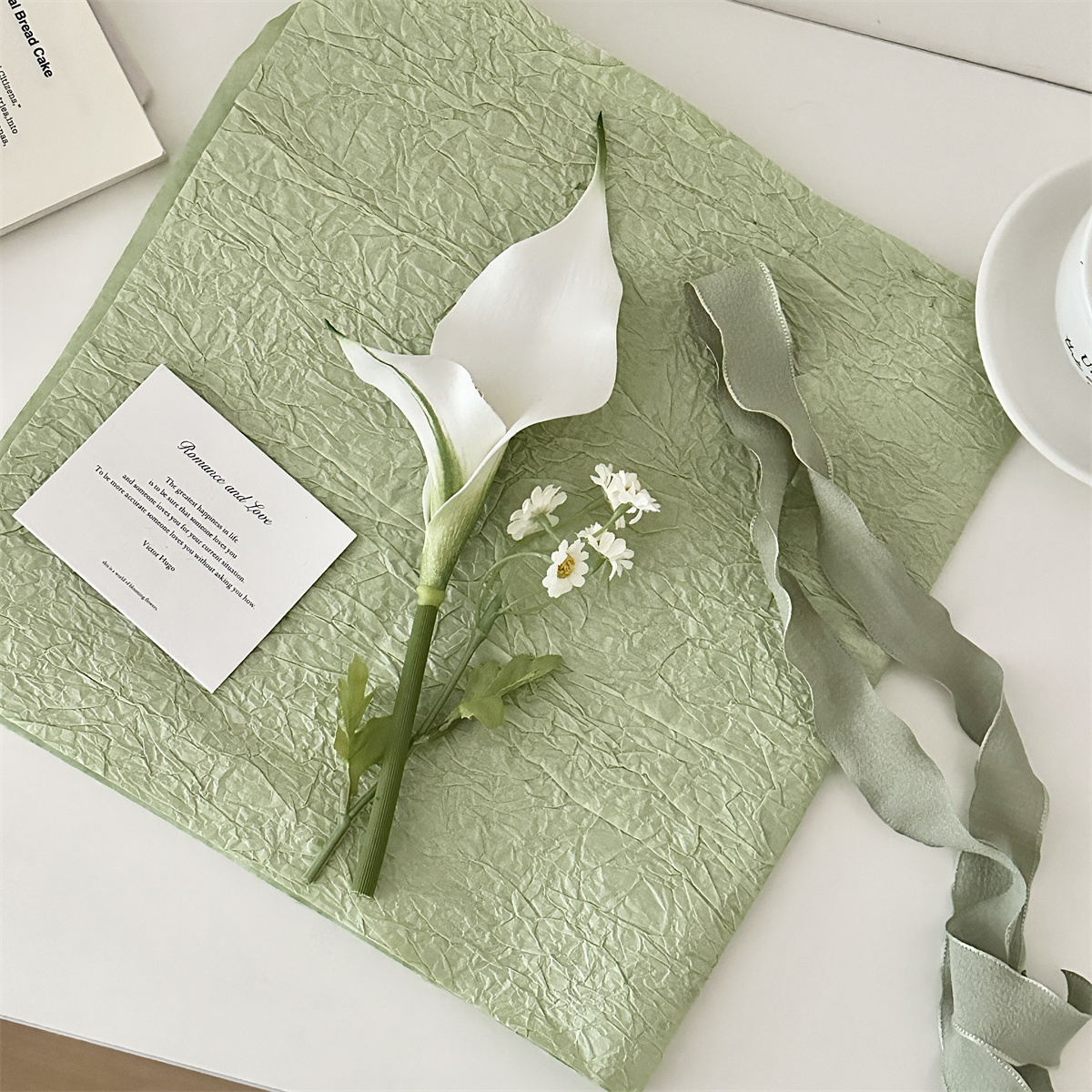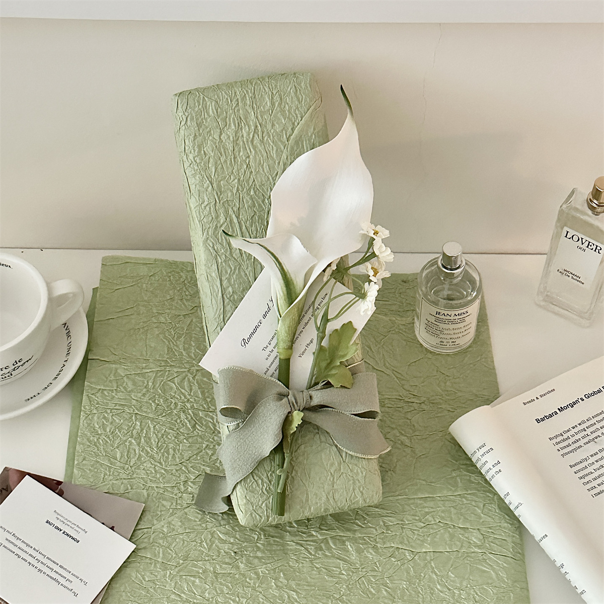 浪漫马蹄莲’绿色褶皱包装石纹纸肌理感鲜花包装花束材料diy礼物