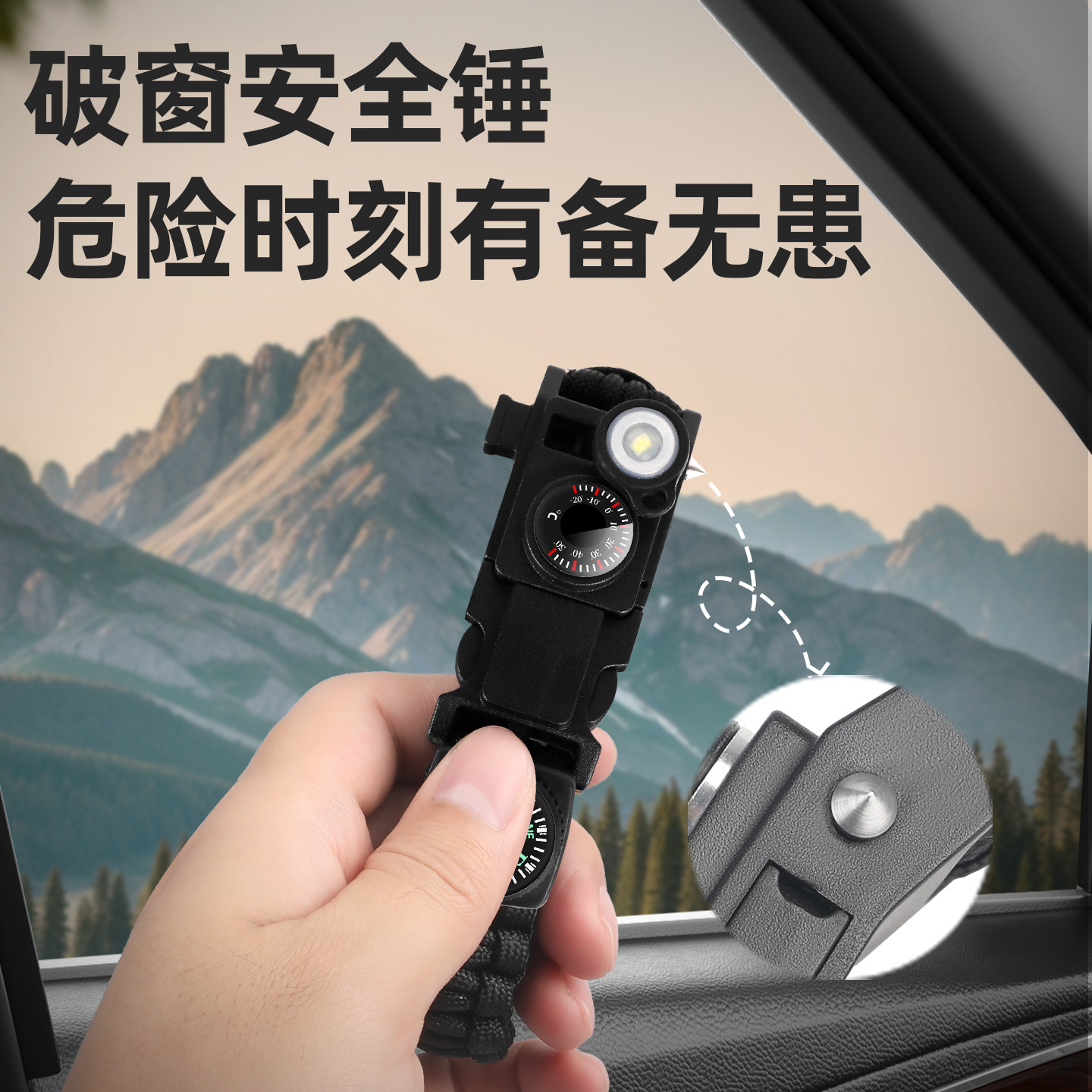 户外求生手环多功能伞绳编织生存手链野外自救生装备指南针