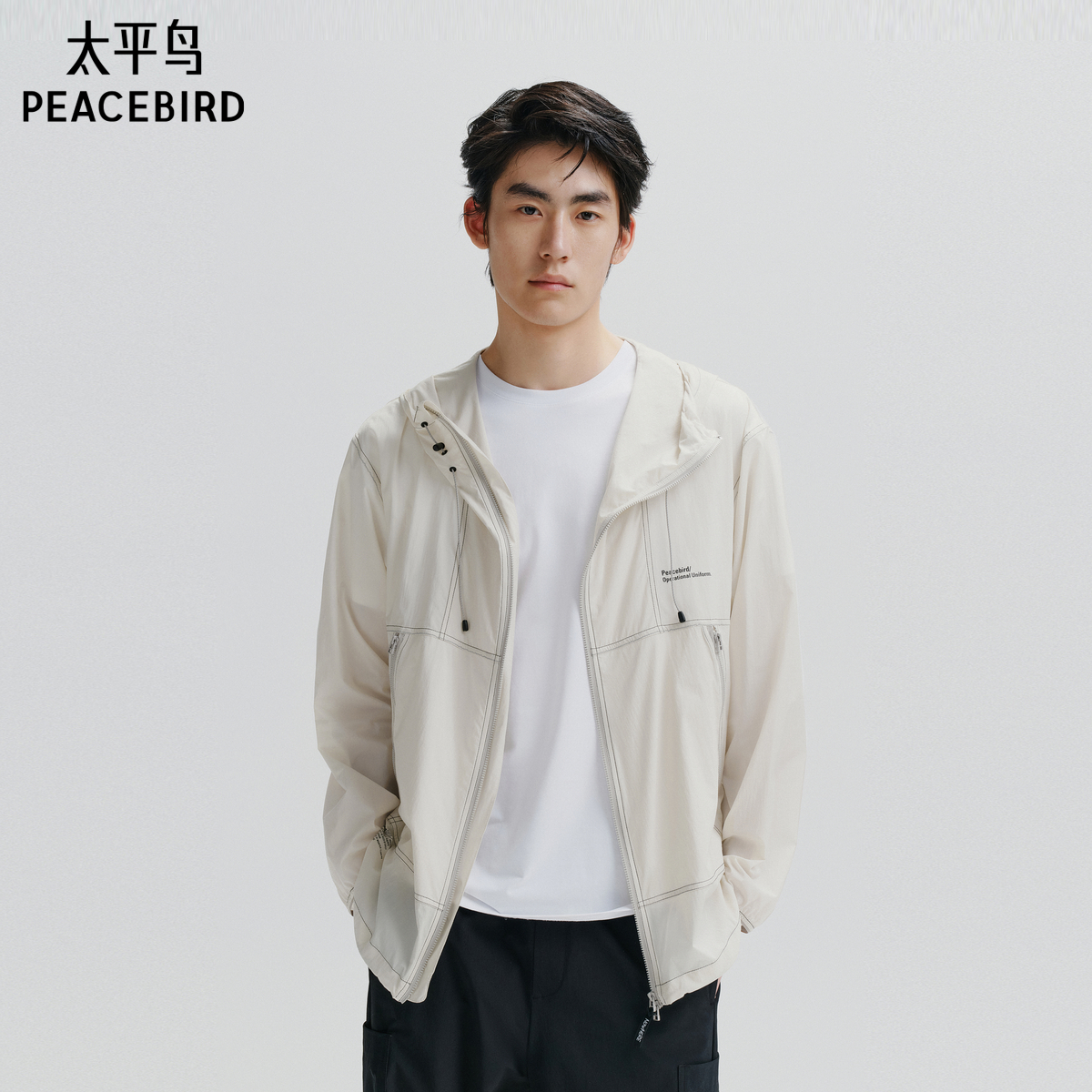 【UPF40+】太平鸟男装防晒服连帽时尚防紫外线皮肤衣户外休闲外套,浙江 宁波
