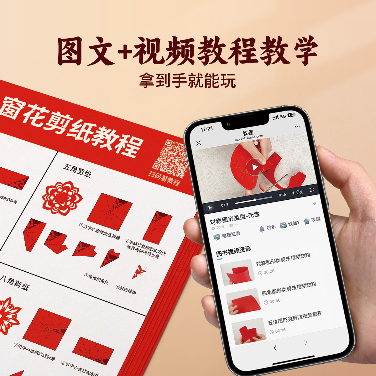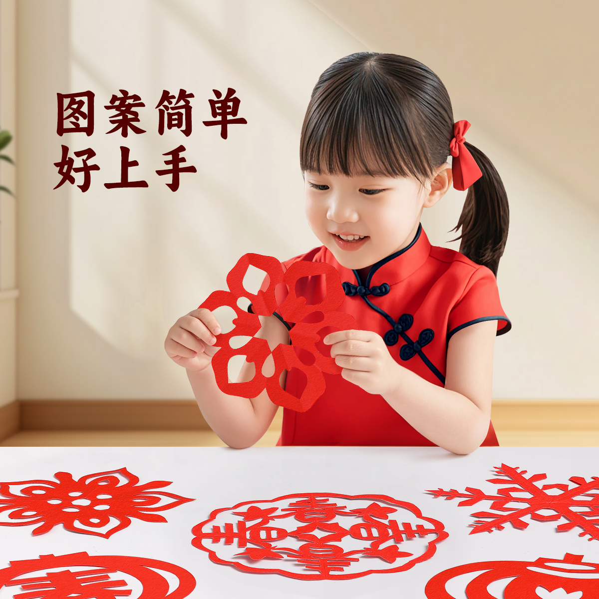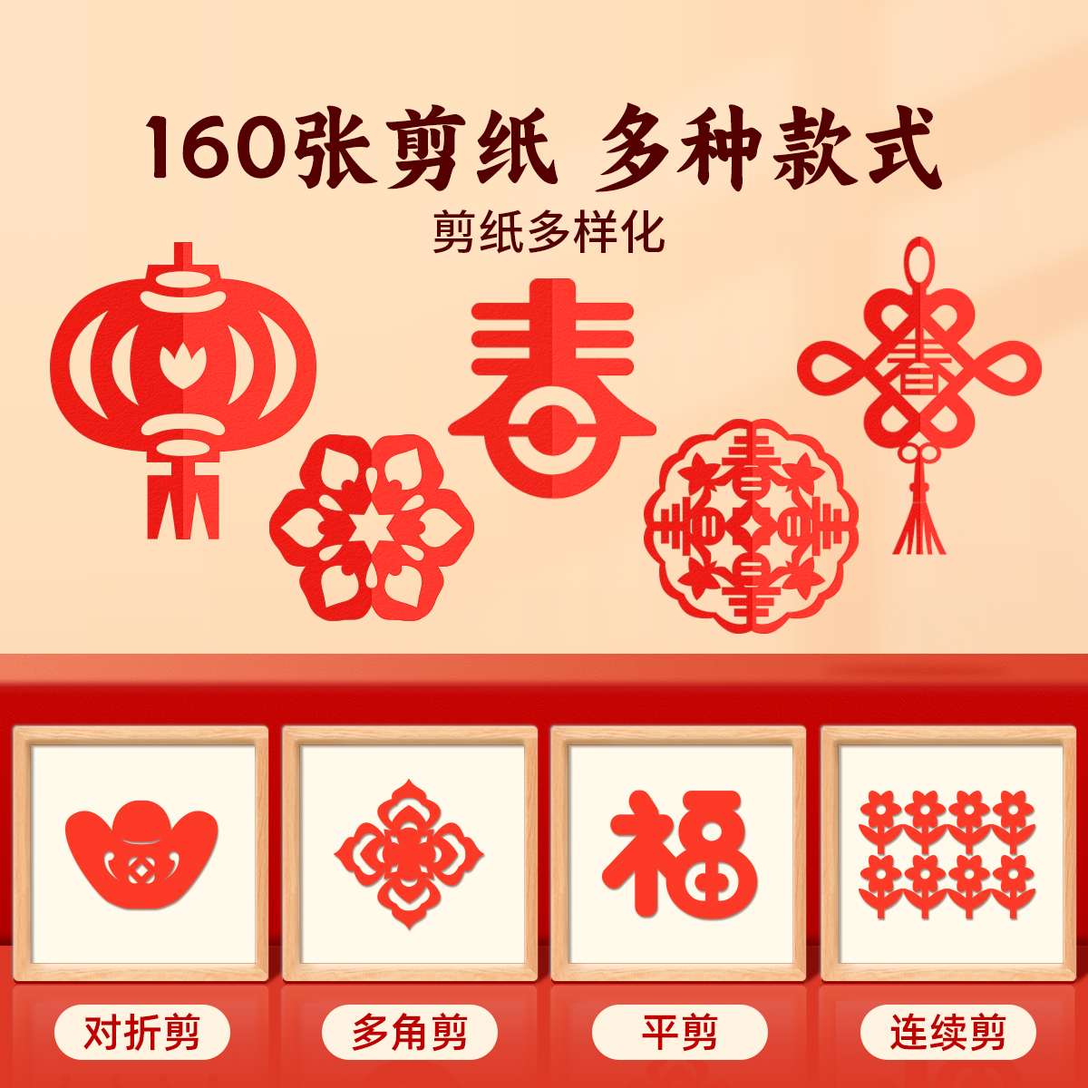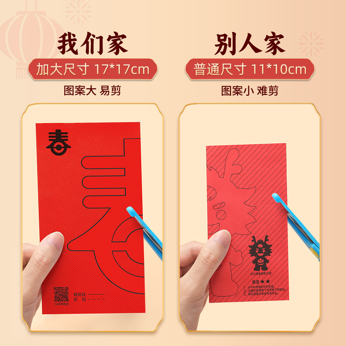 2025新年春节窗花纸剪纸儿童手工蛇年中国风趣味diy专用纸半成品材料包新款幼儿园大红色小学生红纸卡纸折纸