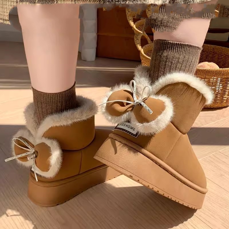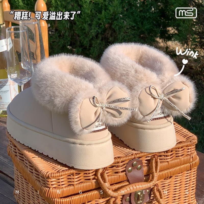 蝴蝶结棉鞋女冬季加绒加厚2025新款厚底保暖居家外穿包跟棉拖鞋男
