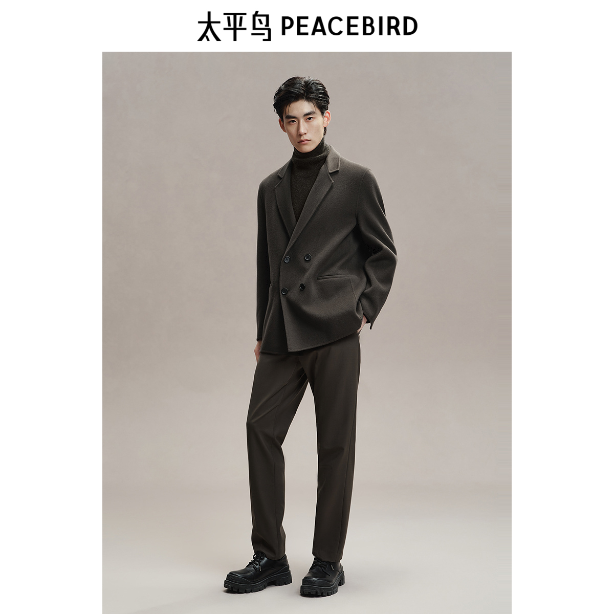 太平鸟男装 毛呢外套男年冬季新款双排扣西装羊毛短款大衣男Y,浙江 宁波
