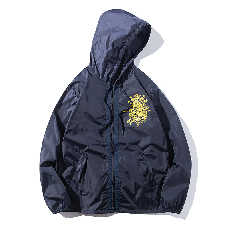 核爆炸宽松大码蓝色运动风衣自收纳皮肤衣连帽长袖户外轻薄外套男