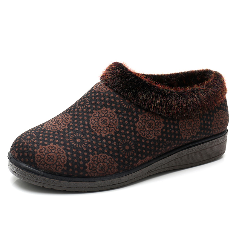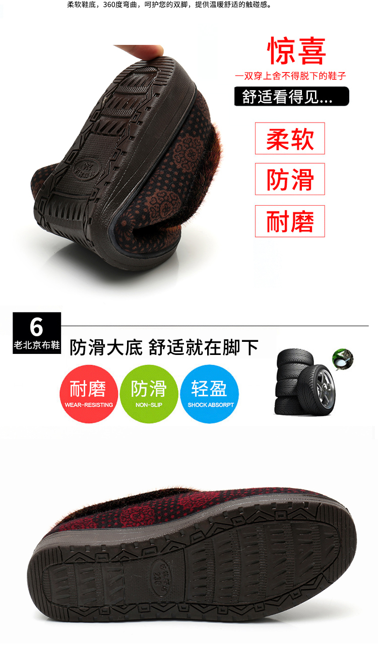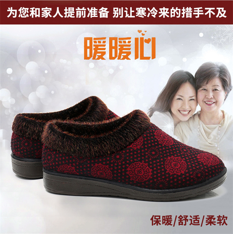 冬季老北京布鞋加绒保暖居家女棉鞋妈妈鞋平底中老年人防滑棉拖鞋,山东 烟台