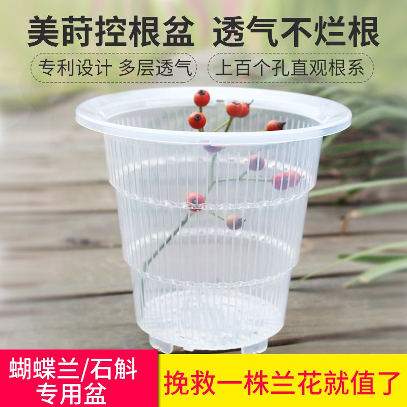 新品控根花盆石斛盆 透气 洋兰花盆蝴蝶兰盆R塑料花盆创意透明
