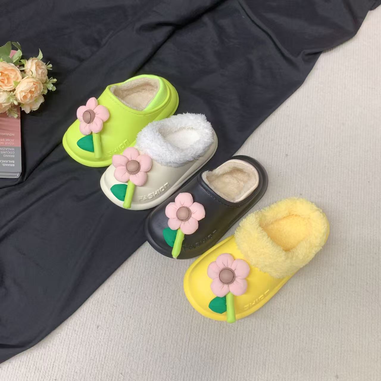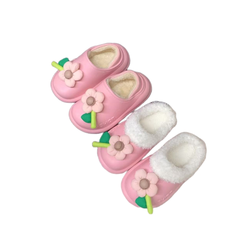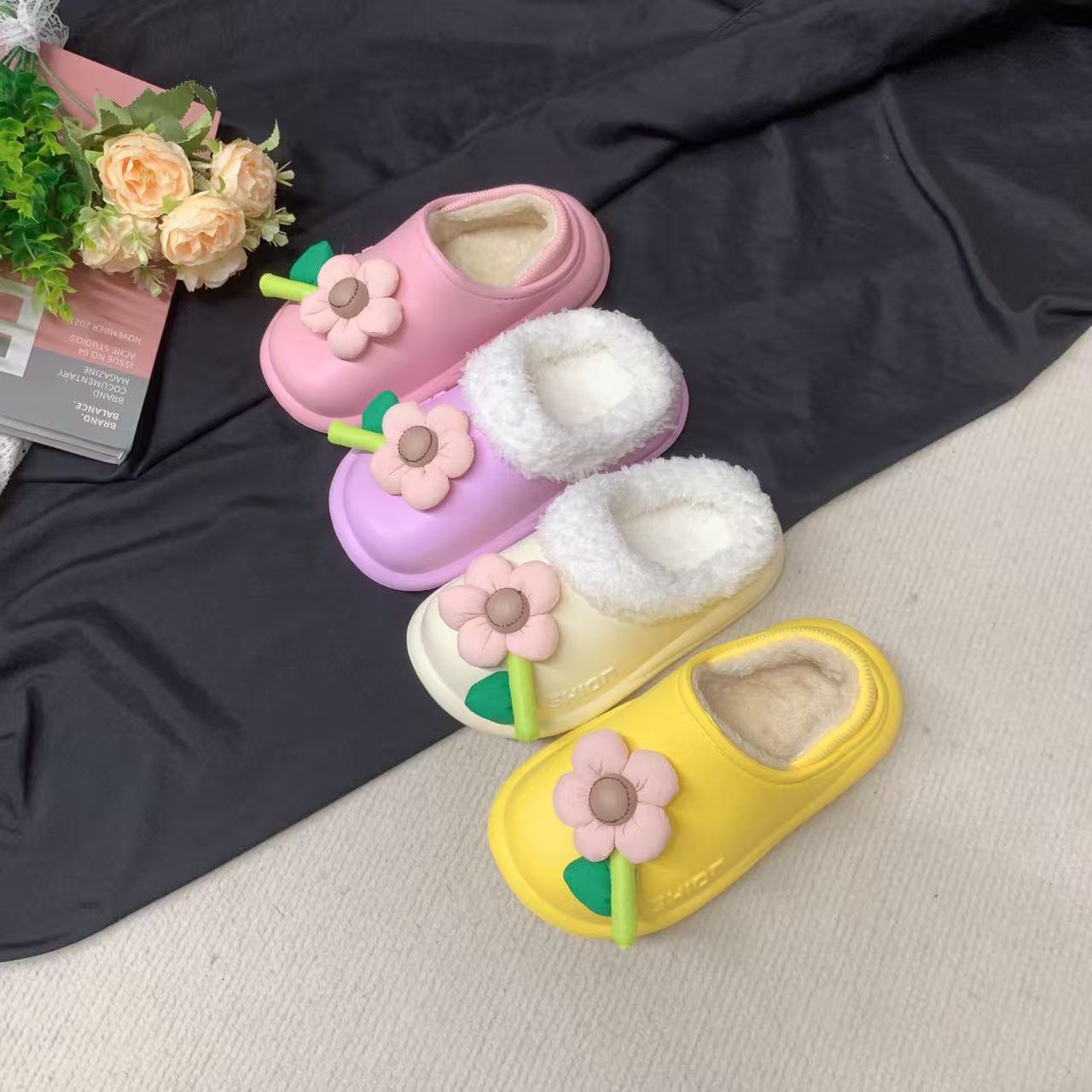冬季包跟棉鞋小粉花朵保暖居家棉拖鞋加绒保暖冬季防水亲子包头拖,广东 揭阳