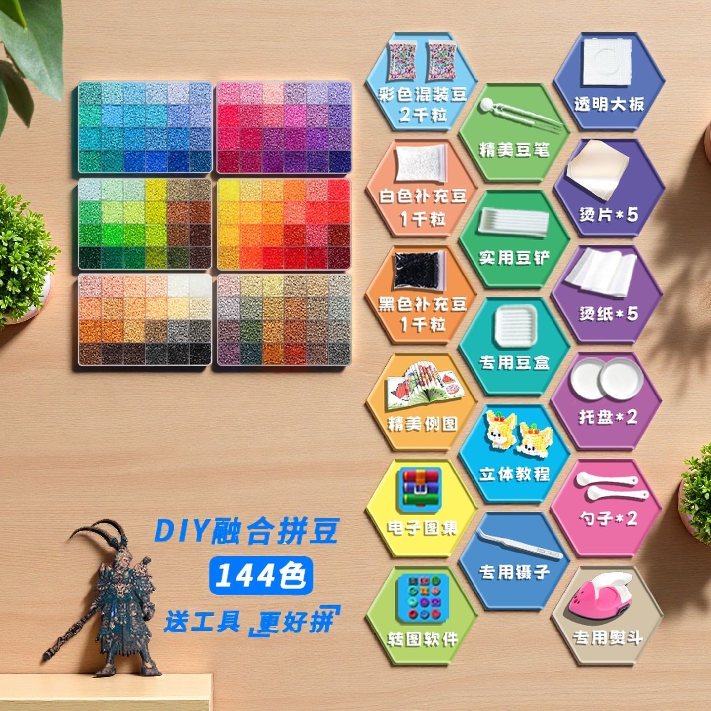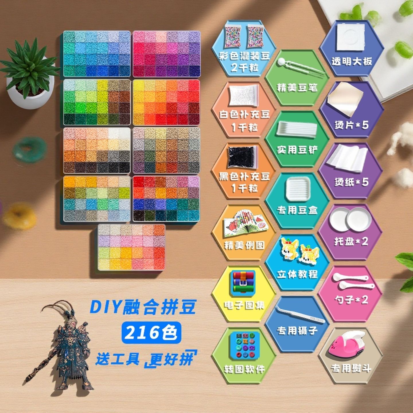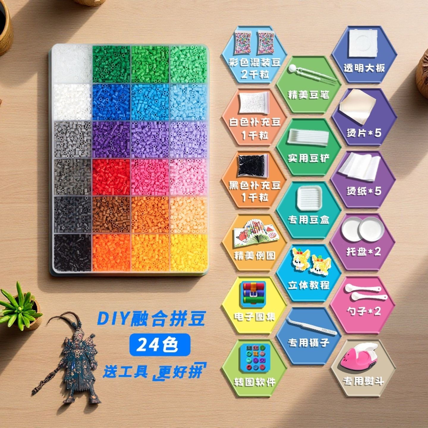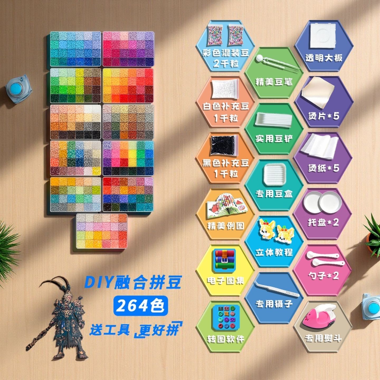 拼豆豆手工diy材料包套装3d立体融合豆2.6mm小豆儿童益智拼图玩具