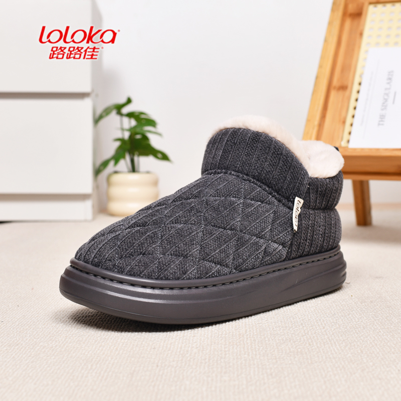 路路佳棉鞋男士冬季厚底防滑耐磨居家保暖加绒包跟棉拖鞋男款外穿