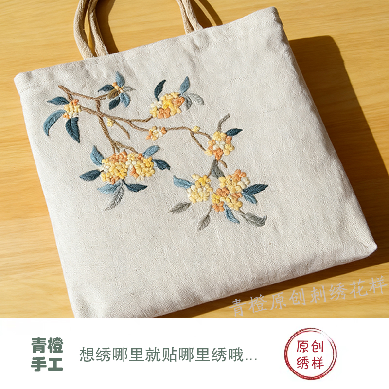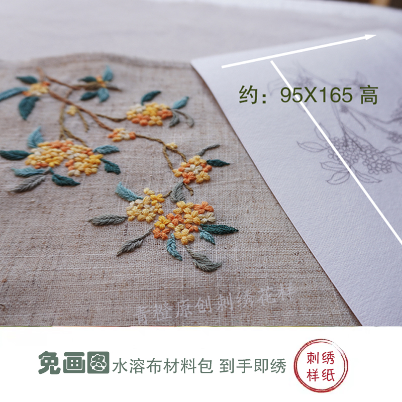 衣服刺绣diy手工图案样纸模版材料包字母领花国风桂花水溶纸背胶,浙江 宁波