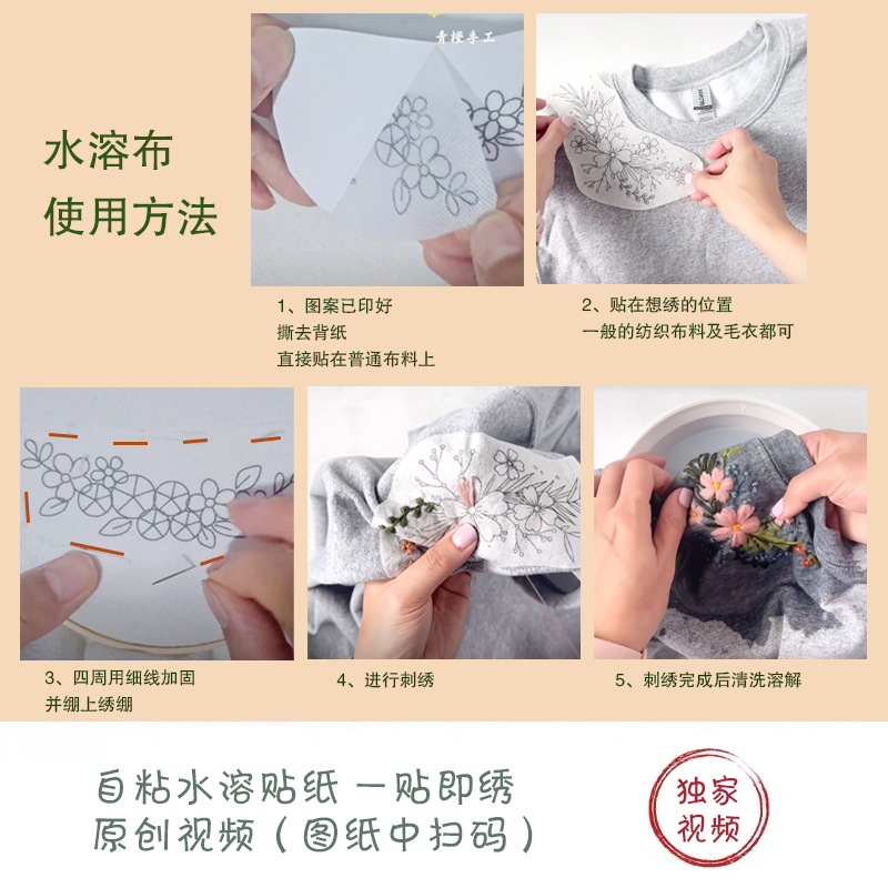 衣服刺绣diy手工图案样纸模版材料包字母领花国风桂花水溶纸背胶