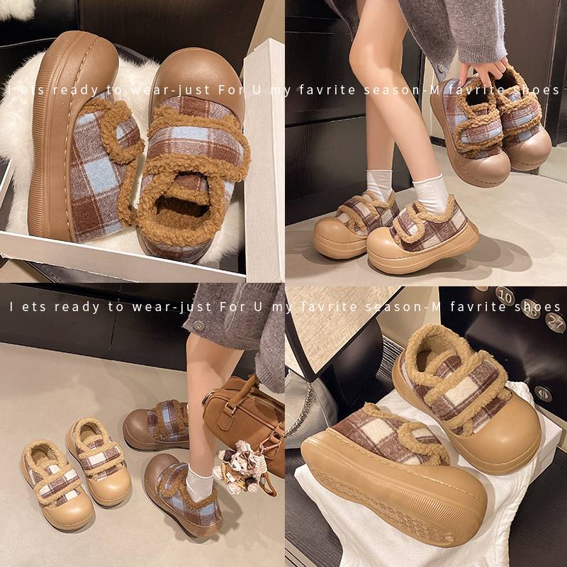 魔术贴棉鞋女2025秋冬新款外穿厚底增高居家防滑保暖包头棉拖鞋潮,浙江 台州