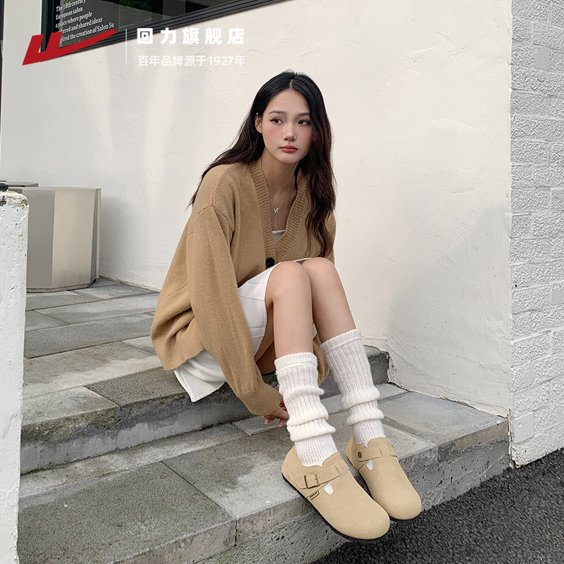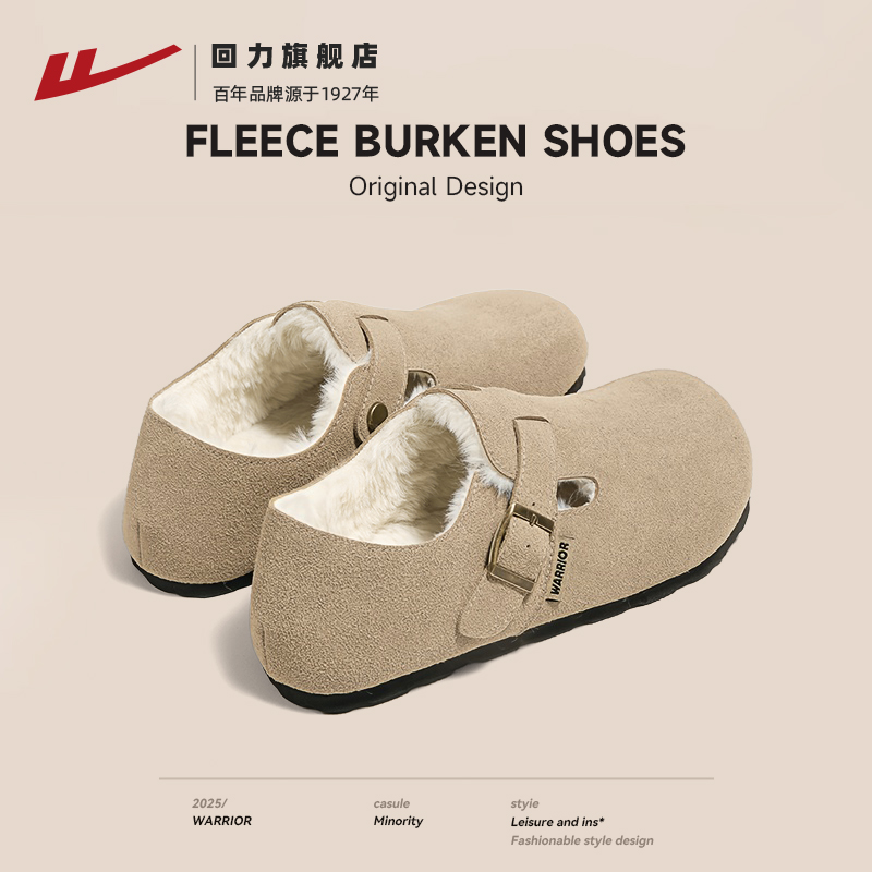 回力加绒勃肯鞋女鞋2025冬季新款全包外穿一脚蹬毛毛棉鞋雪地靴女