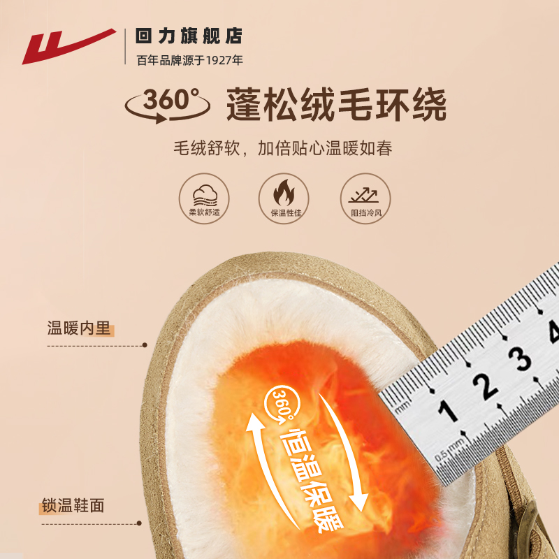 回力加绒勃肯鞋女鞋2025冬季新款全包外穿一脚蹬毛毛棉鞋雪地靴女,江西 南昌