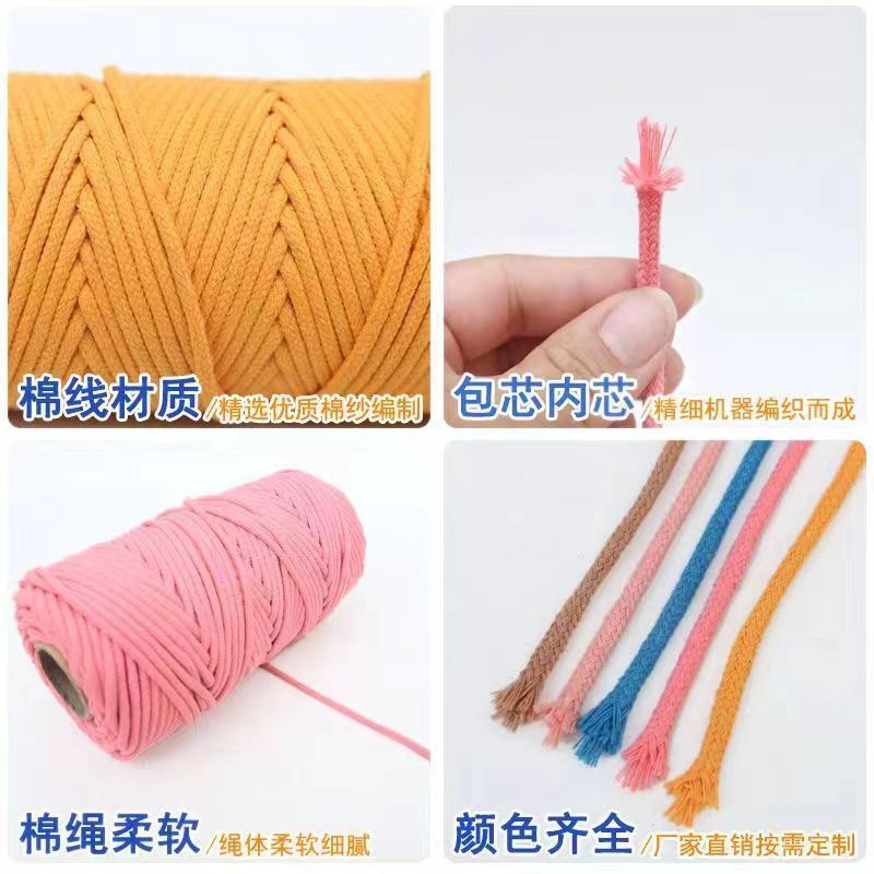 3mm包芯棉绳彩色棉线绳子diy幼儿园手工材料挂毯绳网格装饰编织绳