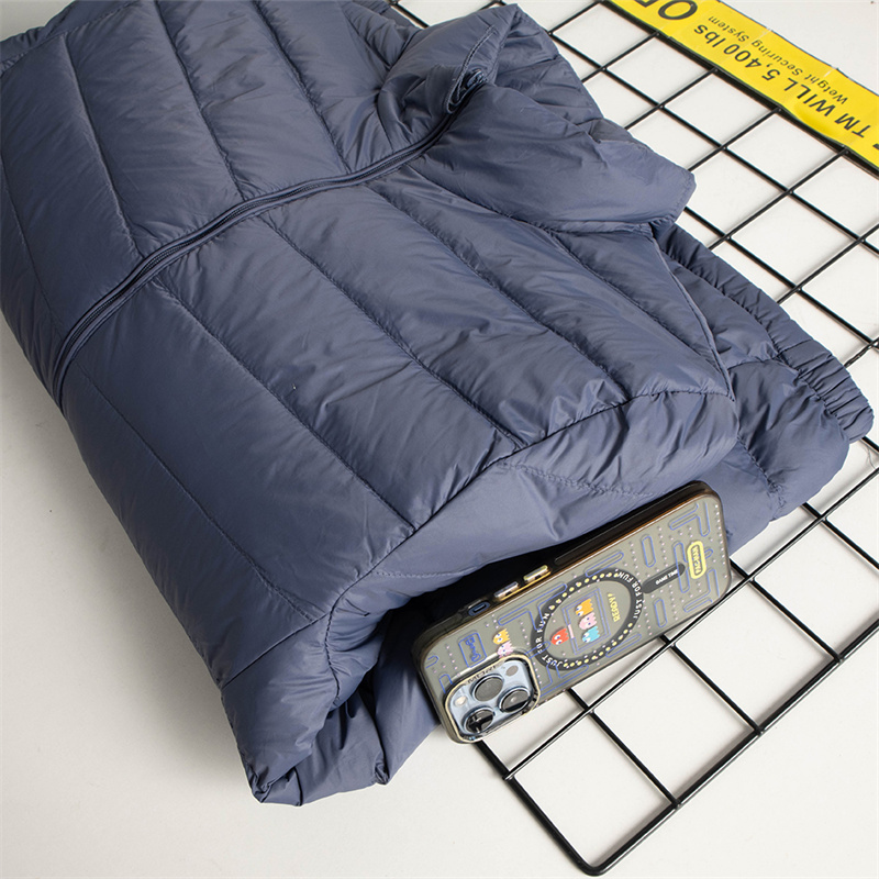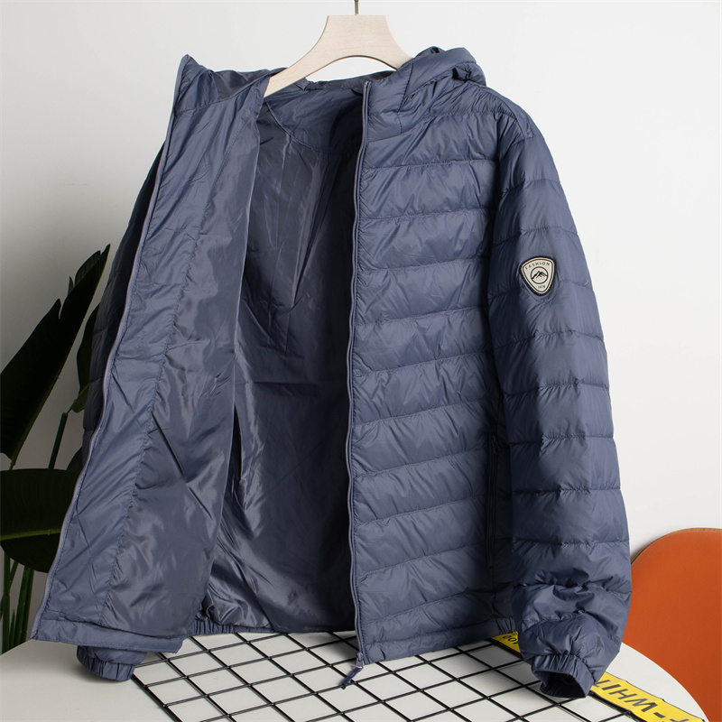 白鸭绒轻盈保暖外贸男装秋冬轻薄款百搭通勤立领连帽休闲羽绒服潮