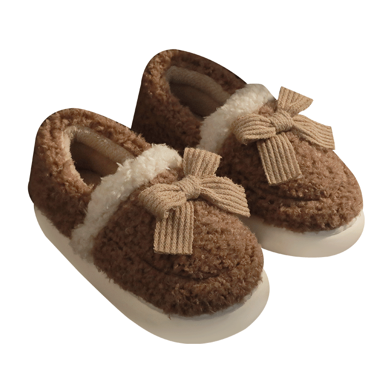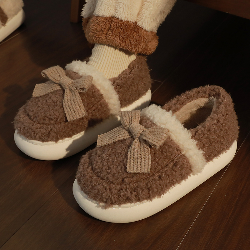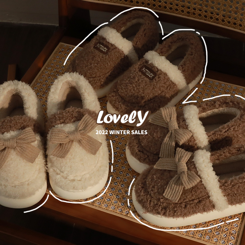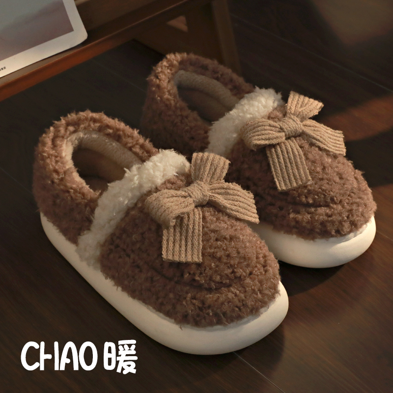 复古蝴蝶结棉拖鞋女冬季居家情侣包跟保暖防滑厚底室内毛绒棉鞋男,浙江 宁波