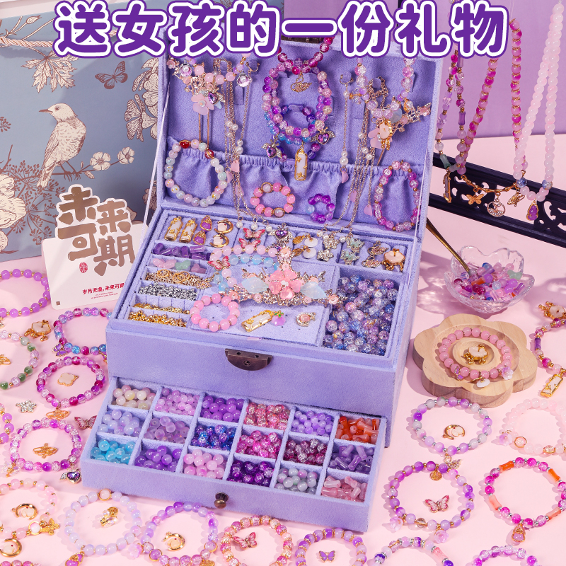 儿童串珠手工diy制作材料包礼物女童串手链女孩子穿珠子手串玩具
