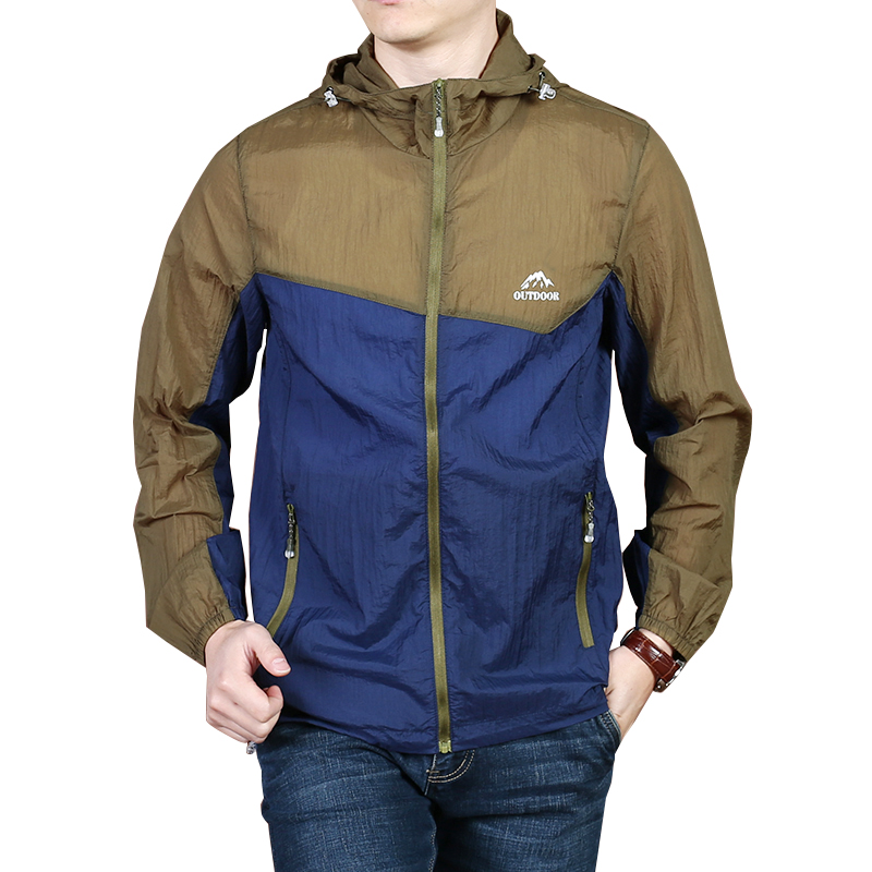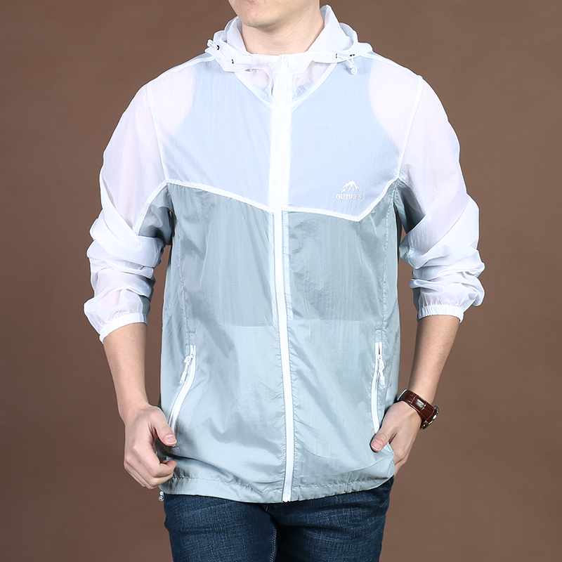 防晒衣男夏季户外轻薄宽松皮肤衣男时尚撞色钓鱼连帽防晒服外套潮,浙江 杭州