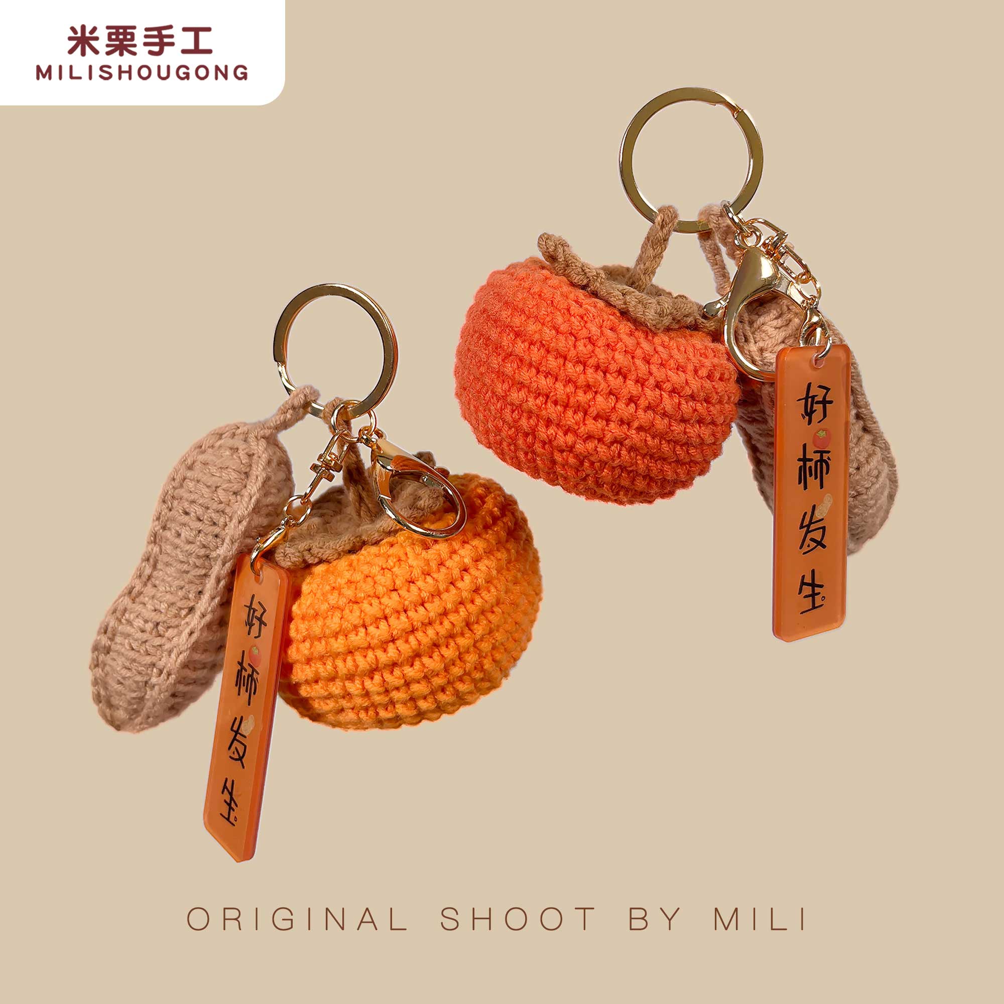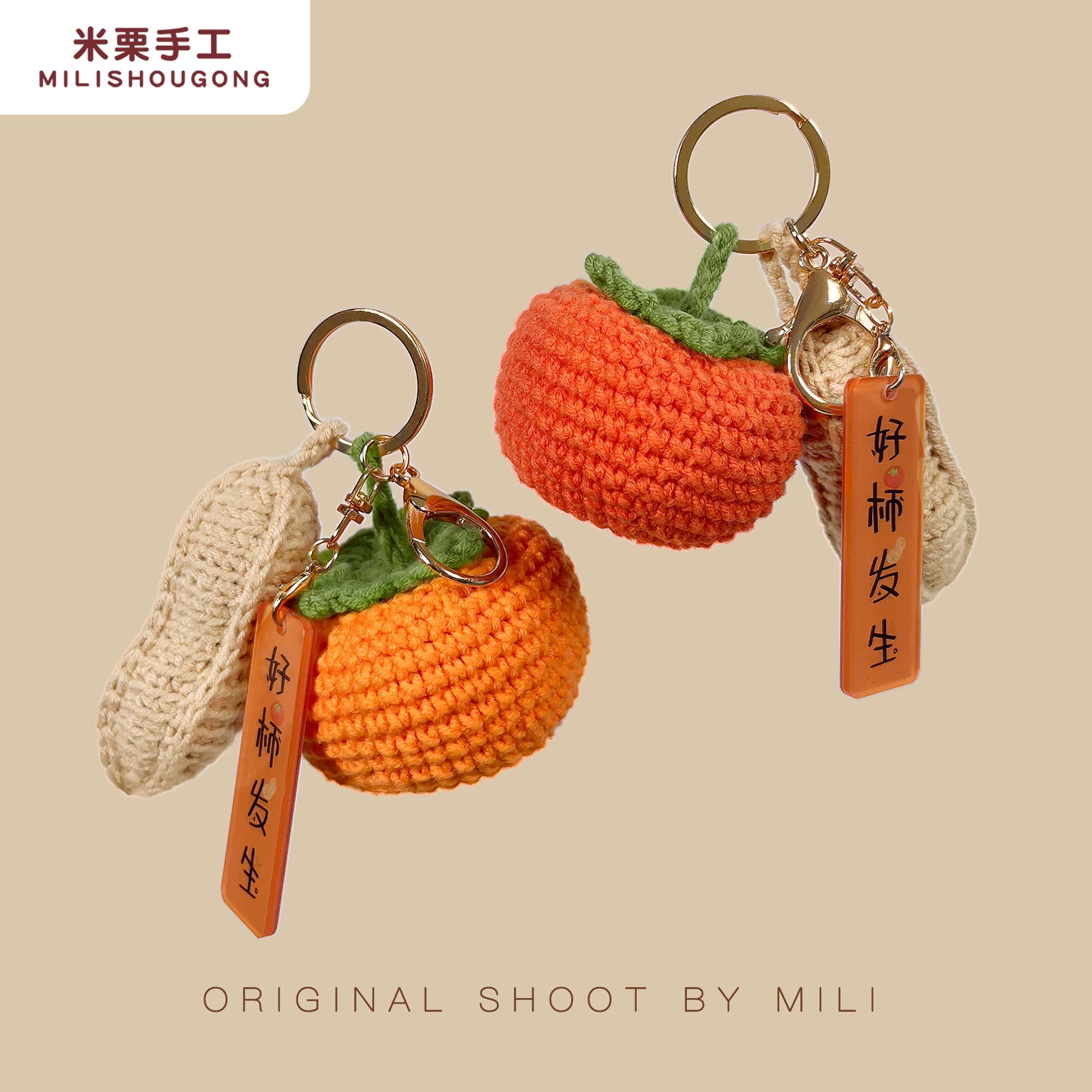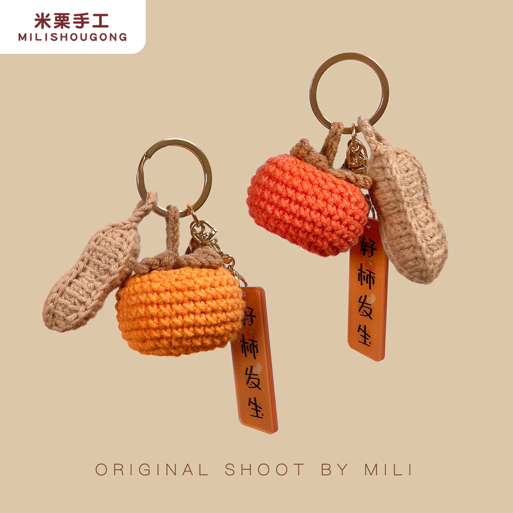 非成品/柿子花生/手工diy毛线钩织编织材料包/好事发生钥匙挂件