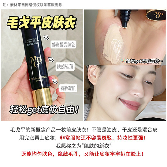 秒杀价格!毛戈平皮肤衣凝脂柔肌妆前霜素颜霜清透提亮保湿,江苏 南京