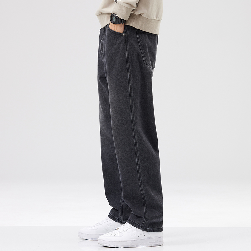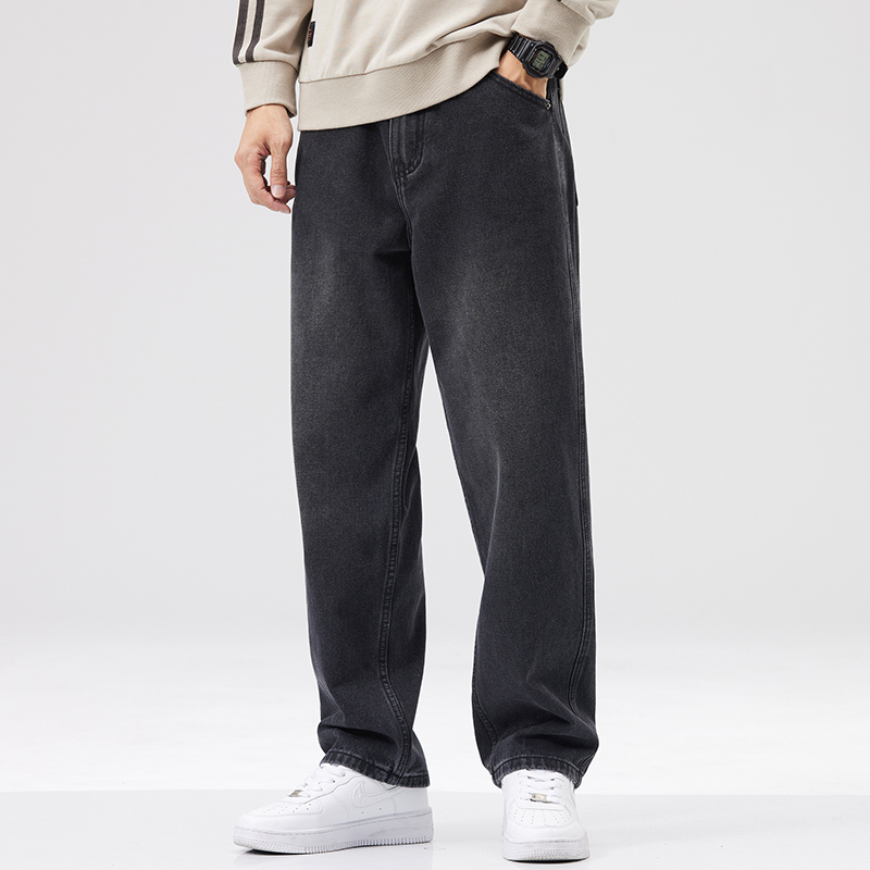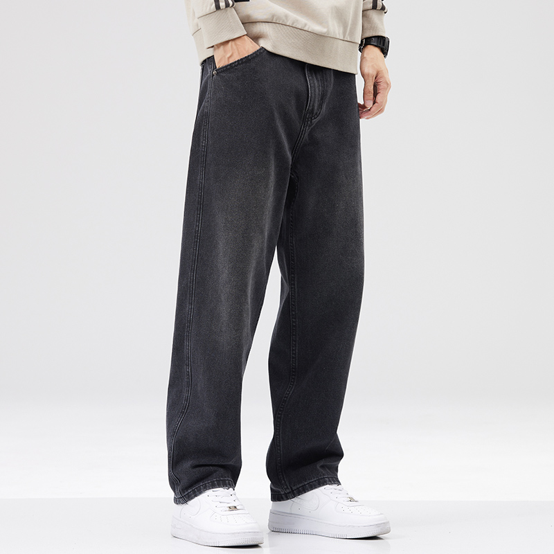 hansca黑色直筒牛仔裤男百搭大码美式宽松2025春秋潮流休闲长裤子,广东 广州
