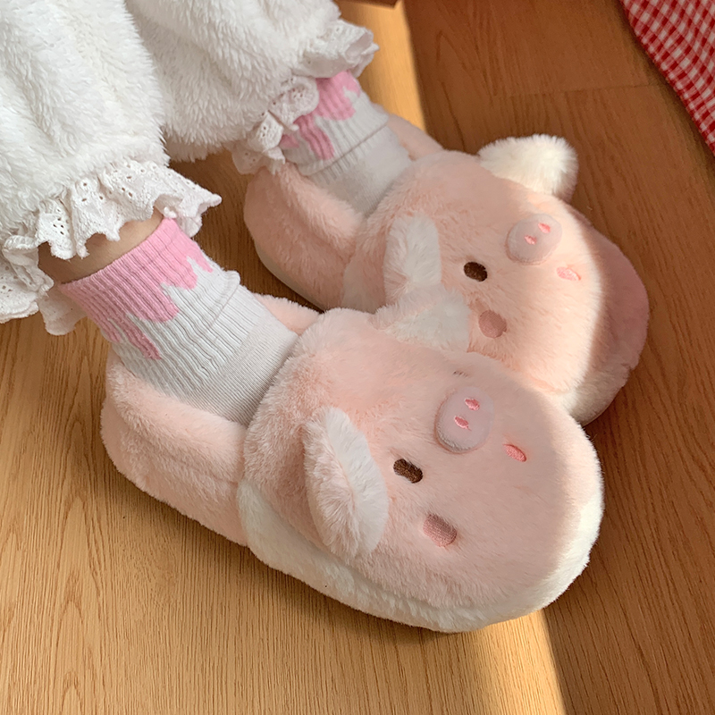 踩屎感可爱小猪充棉拖鞋女冬季外穿网红居家防滑保暖包跟棉鞋假日,上海