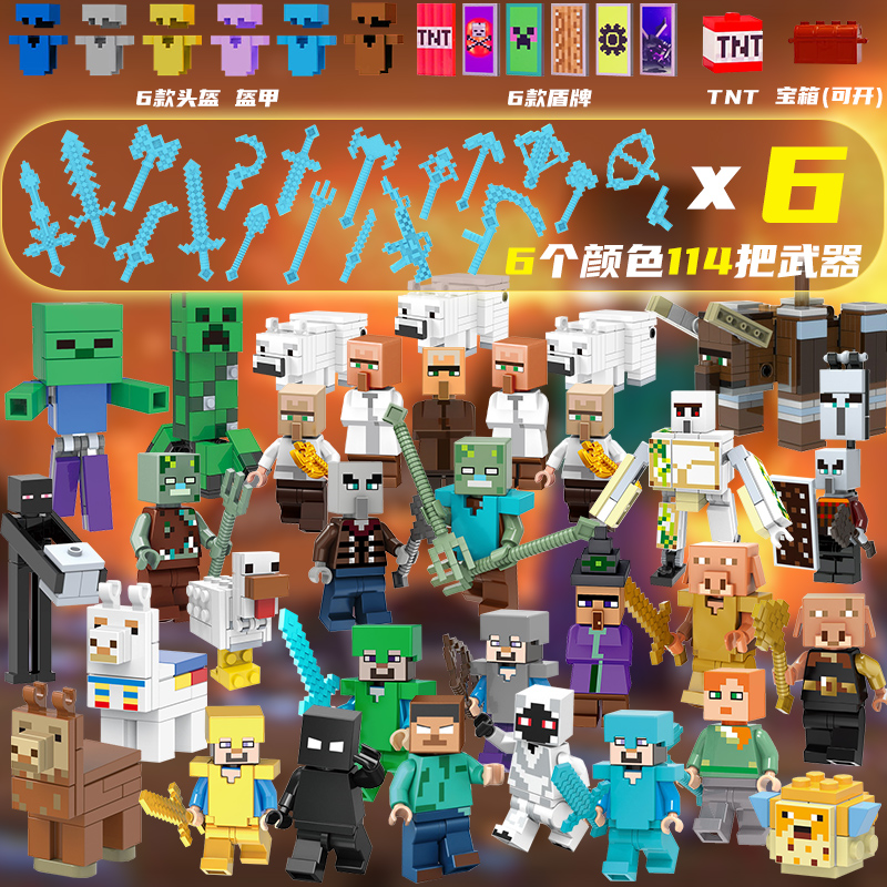 我的世界积木人仔全套minecraft周边史蒂夫him武器装备拼装玩具,广东 汕头