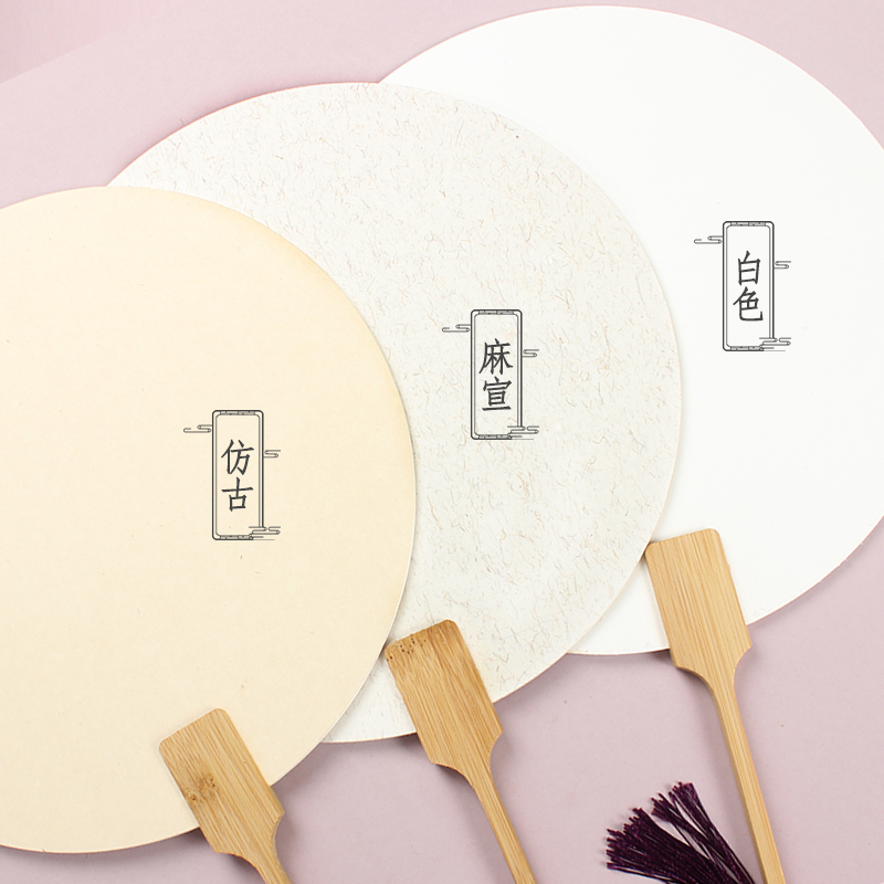 双面加厚宣纸团扇空白手绘画宫扇diy国画水彩画毛笔字仿古风扇子