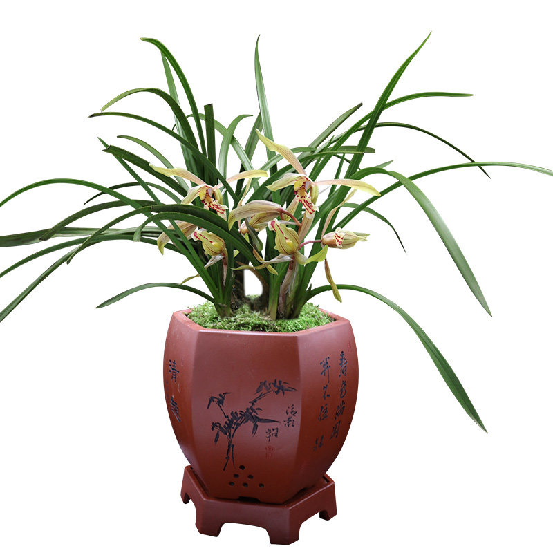 特香蕙兰浓香花卉兰花植物盆栽矮种蕙兰带花苞草苗微景观盆栽景,浙江 舟山