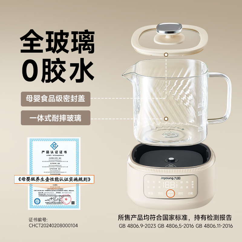 九阳全玻璃恒温养生壶办公室小型多功能家用炖煮茶烧水壶饮水机新