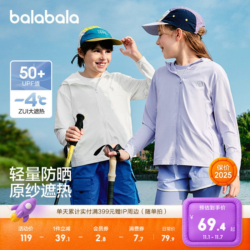 巴拉巴拉儿童防晒衣男童女童2025年夏季薄款皮肤衣透气宝宝亲子潮