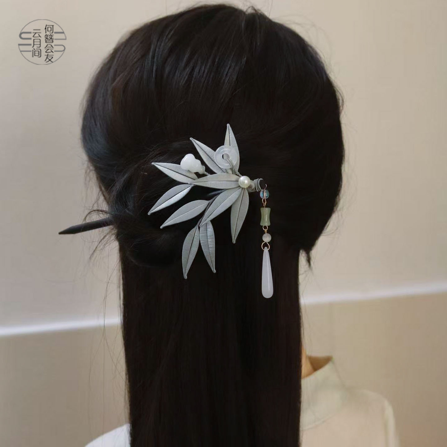 多宝竹叶缠花发簪材料包diy手工制作免剪纸膜有教程新中式簪发饰
