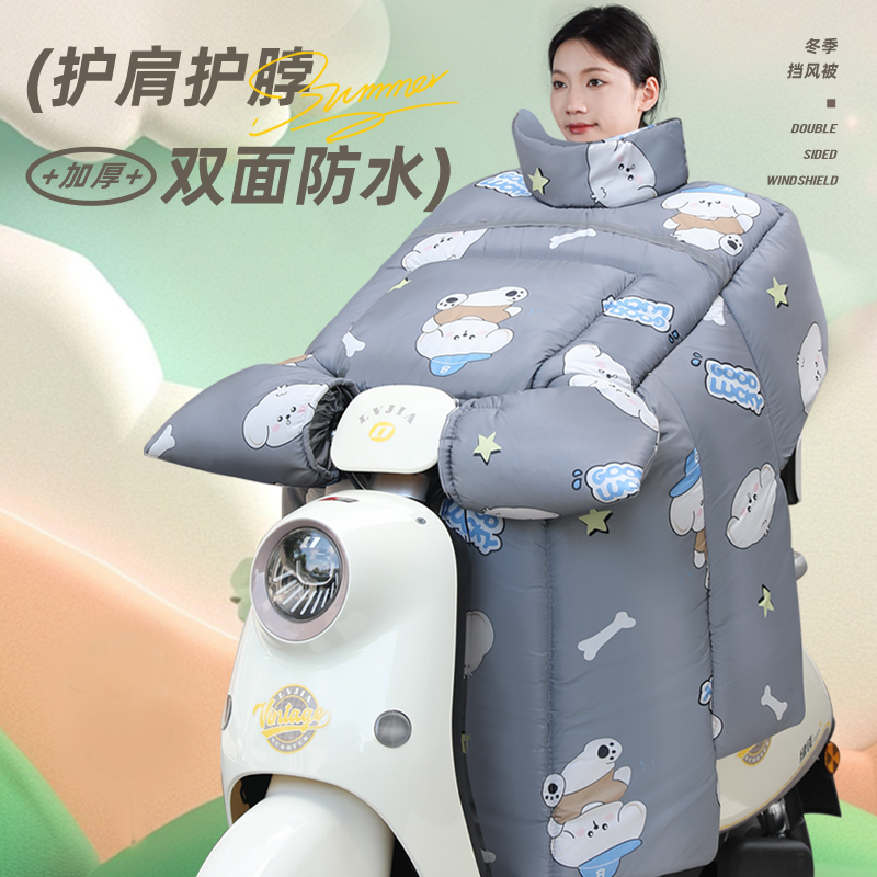 电动车挡风被双面防水新款加大号电瓶车防风被冬季加绒加厚法兰绒