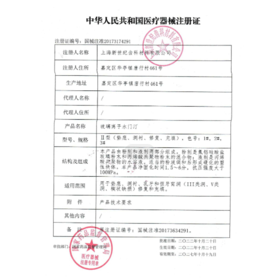 牙科口腔材料上海新世纪玻璃离子水门汀1普通型2增强型补牙