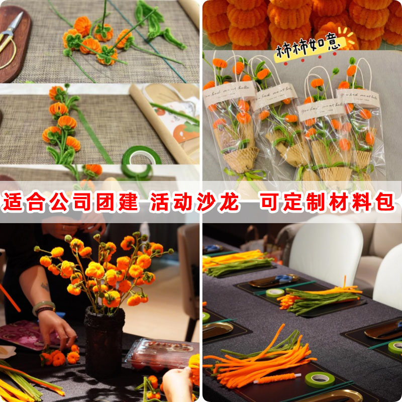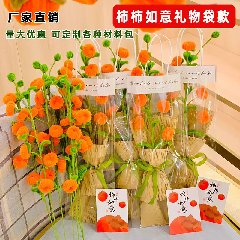 柿柿如意扭扭棒花束diy材料包柿子树毛根手工编织制作圣诞节礼物