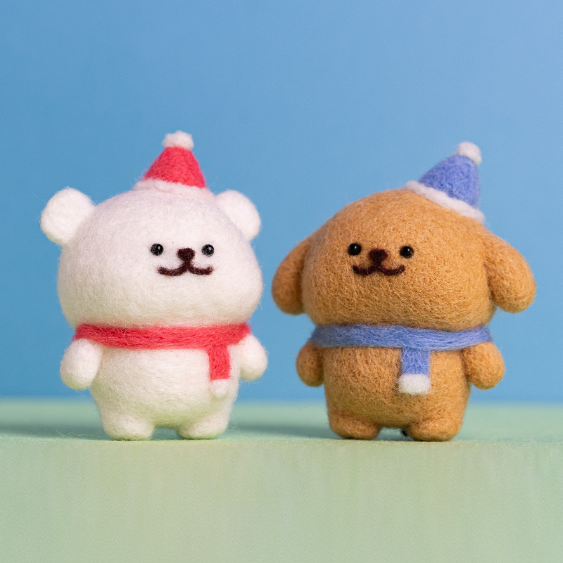 线条小狗羊毛毡戳戳乐diy材料包手工制作玩偶挂件摆件情侣送礼物
