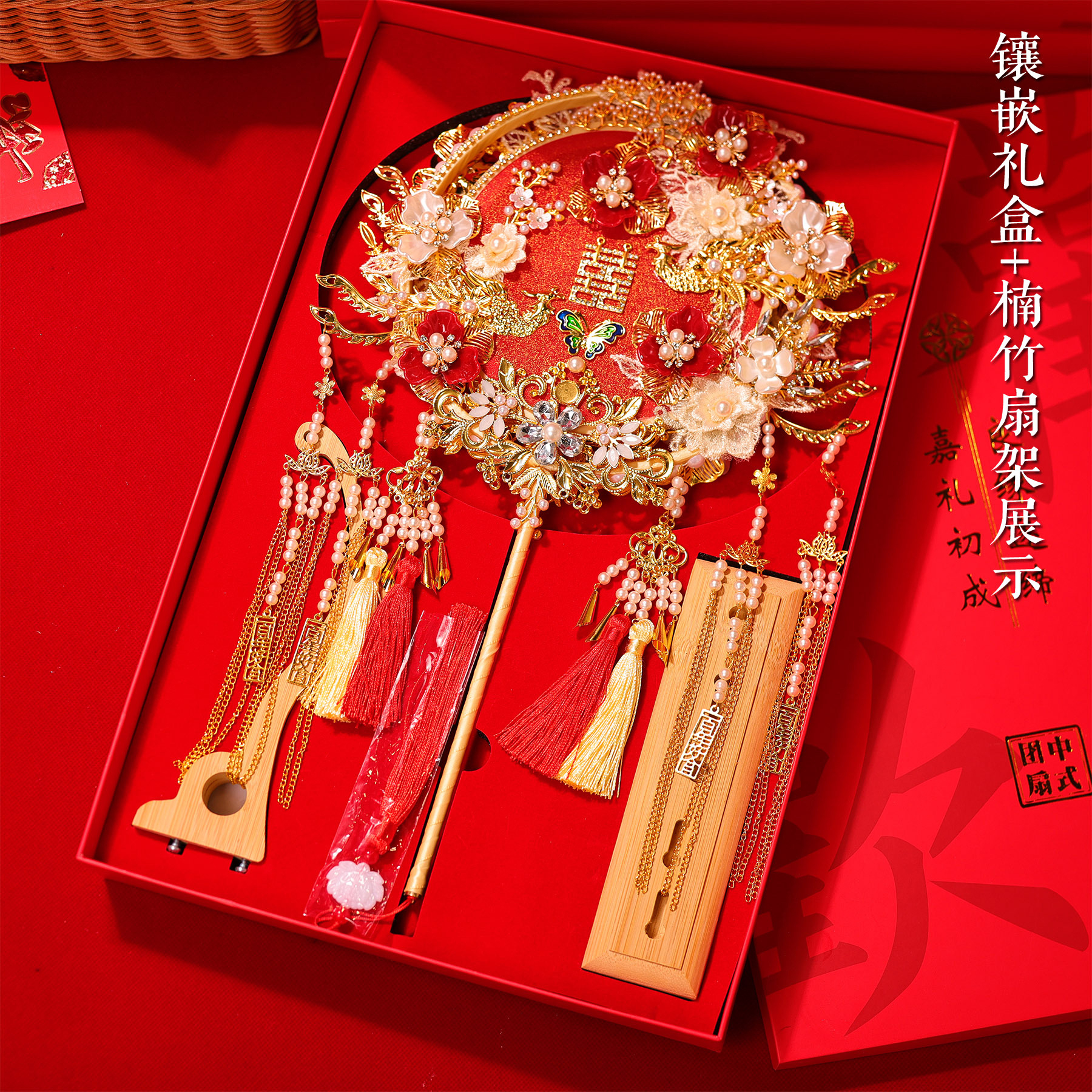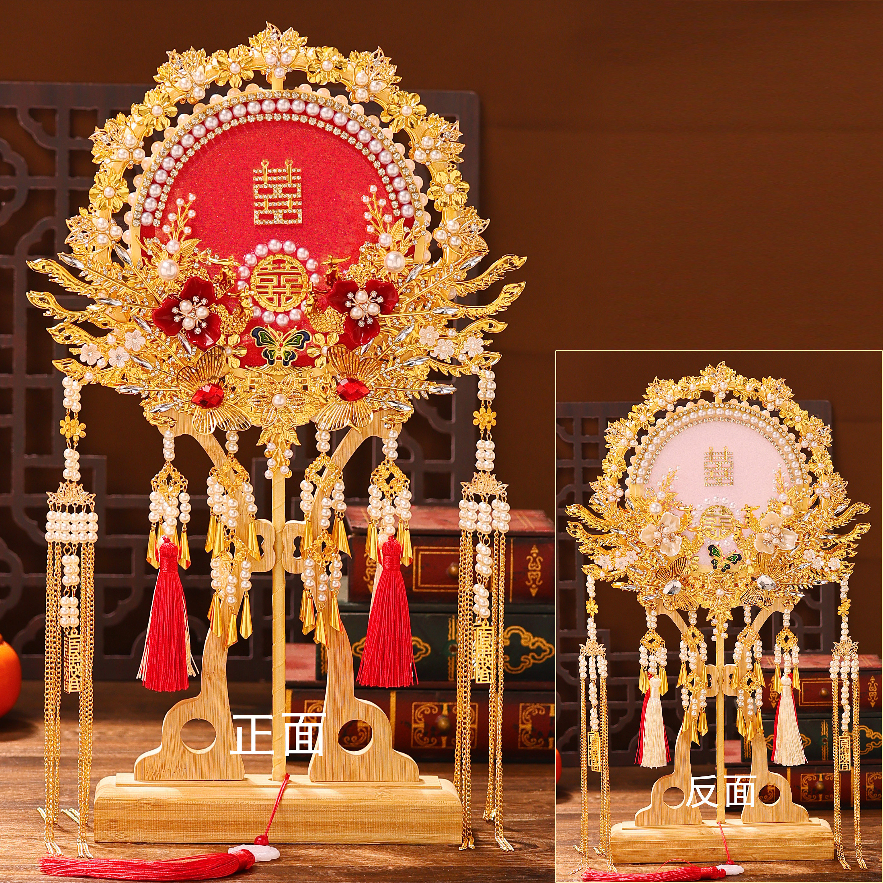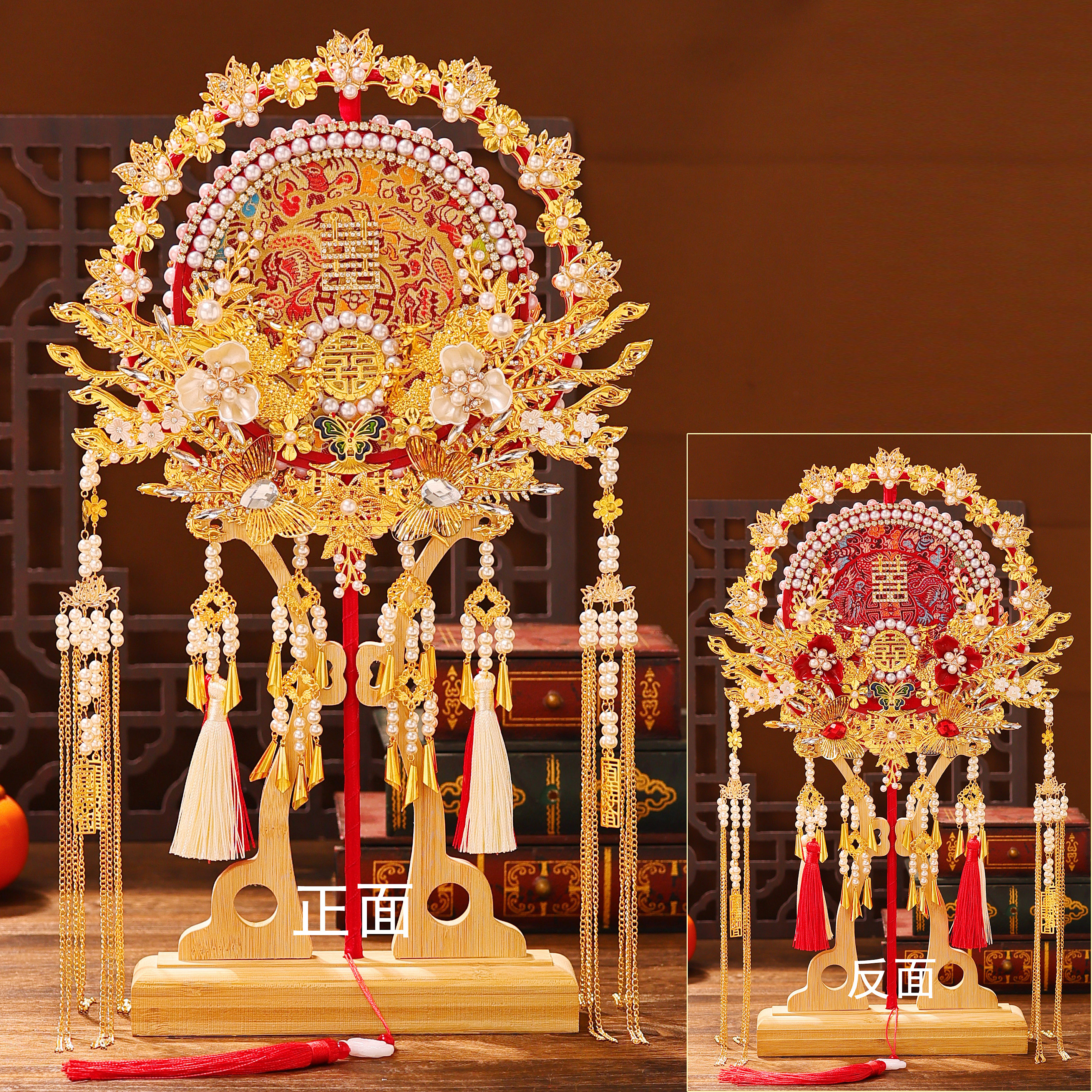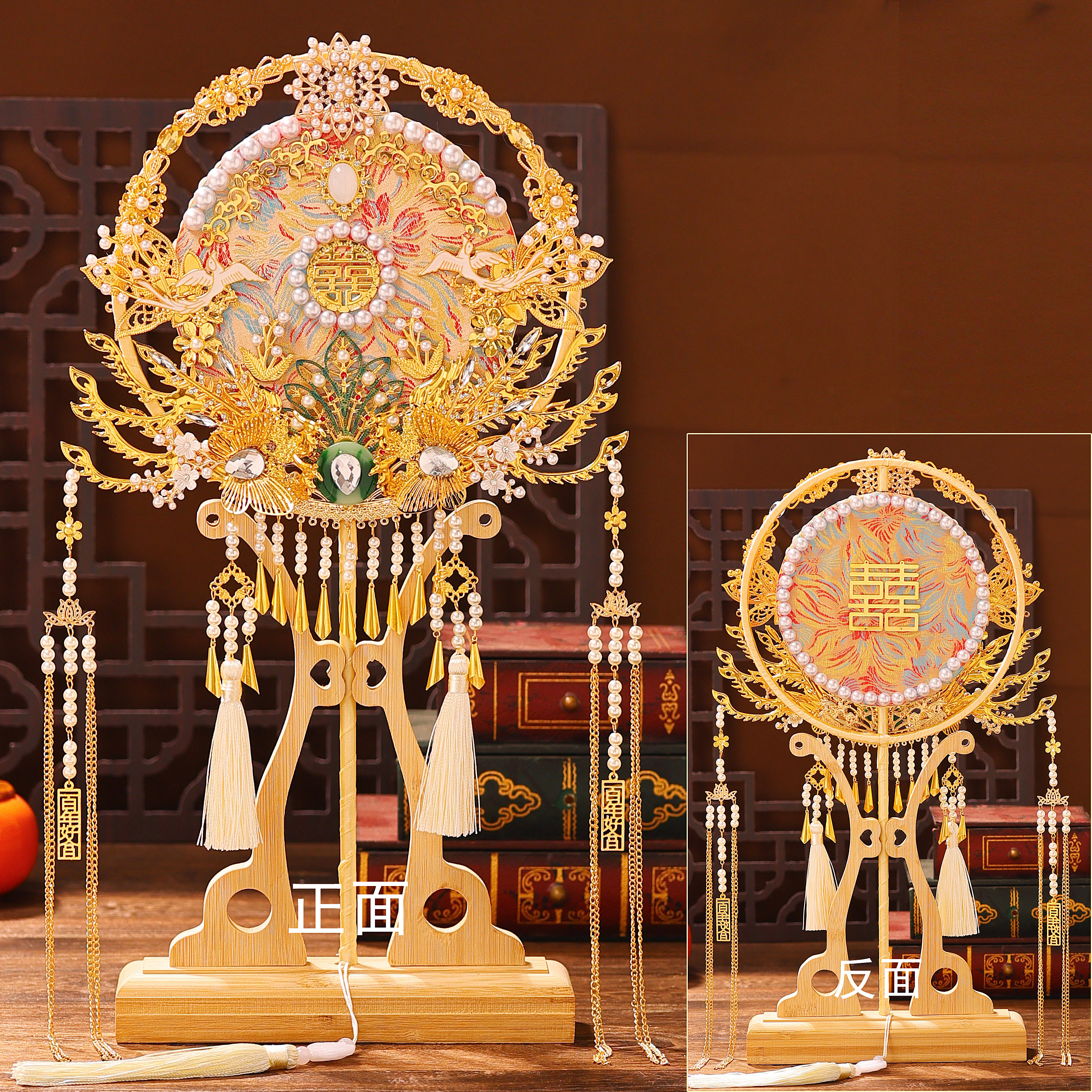 婚扇团扇结婚新娘手工成品古风重工diy材料包婚礼秀禾双面喜扇子